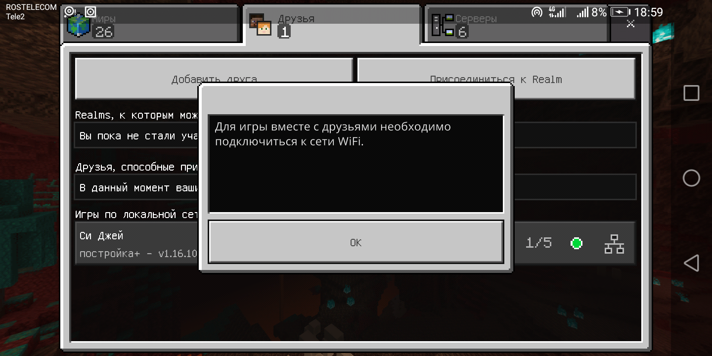 Previously, in order to play together on android in Minecraft it was necessary that one smartphone handed out, and another connected. Now this will not roll, and it is necessary that both smartphones were connected to Wi-Fi. It's not good if you're away from the nearest Wi-Fi and you want to play with a friend. You hand it out and it connects, you enter the world, and the inscription about the lack of connection to Wi-Fi is highlighted. Why you did it, if before everything worked and with the internet from the phone, it is unclear. Previously, in order to play together on android in Minecraft it was necessary that one smartphone handed out, and another connected. Now this will not roll, and it is necessary that both smartphones were connected to Wi-Fi. It's not good if you're away from the nearest Wi-Fi and you want to play with a friend. You hand it out and it connects, you enter the world, and the inscription about the lack of connection to Wi-Fi is highlighted. Why you did it, if before everything worked and with the internet from the phone, it is unclear. The funny thing is that Realms works in this way, that is why you force to purchase a subscription.