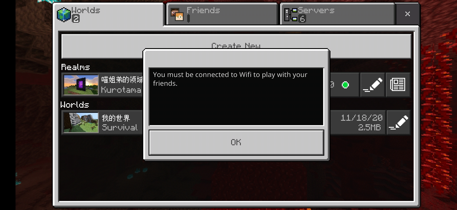 But it doesn't work and there is a notification that telling me to connect for a wifi to be able to play with friends keeps showing up while I try to login to my realm.