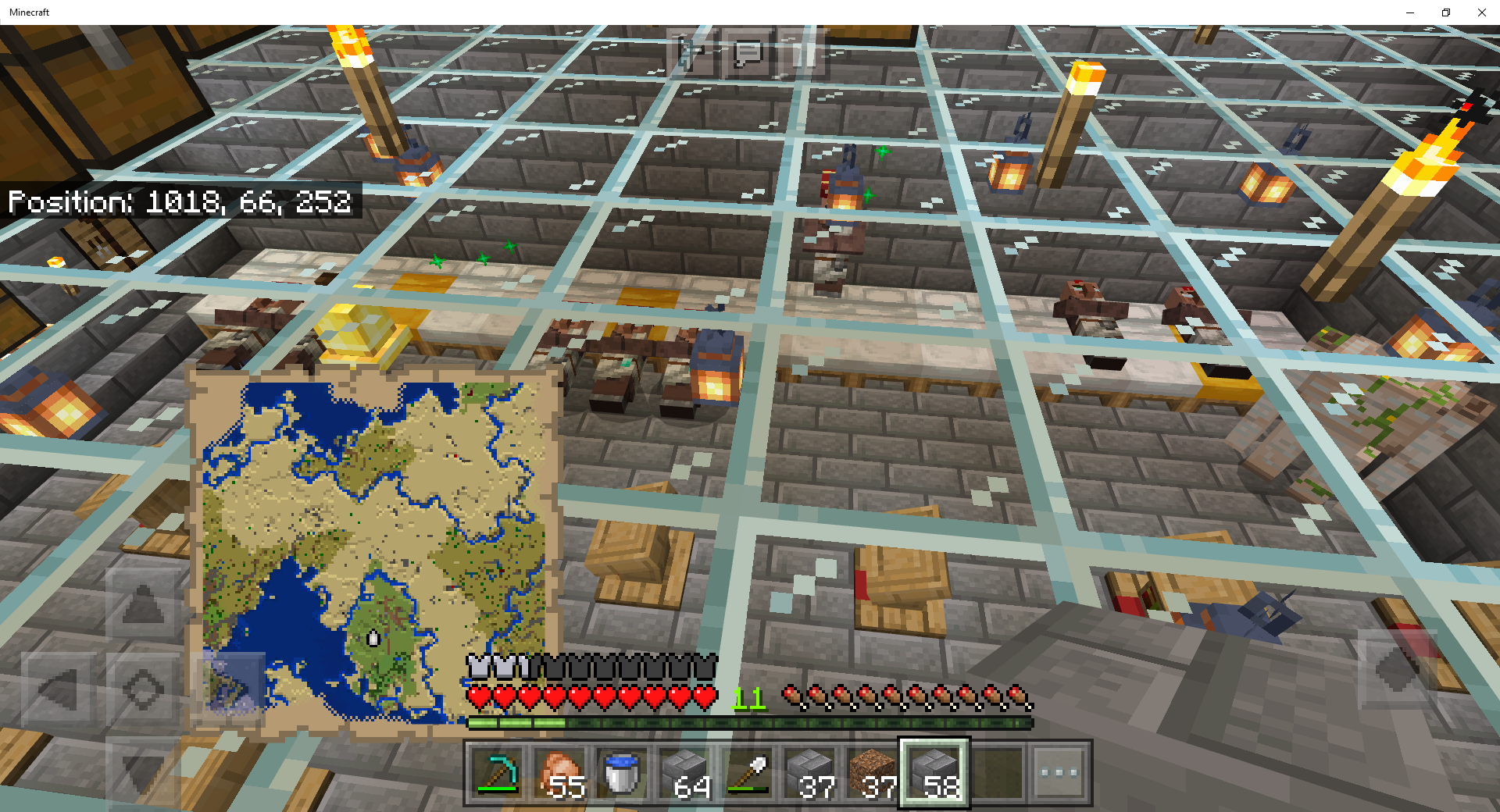 In the picture above my basement with the glass floor you can see villagers half on the beds