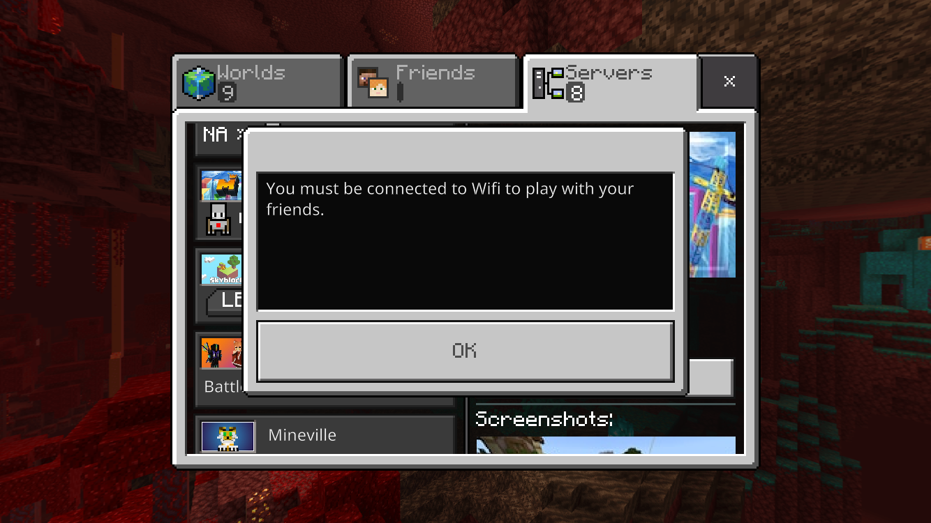 Can't use mobile data on servers shows " you need to be connected to WiFi to play with your friends" and I have the option in setting - profile - use mobile data on, and it still doesn't work.