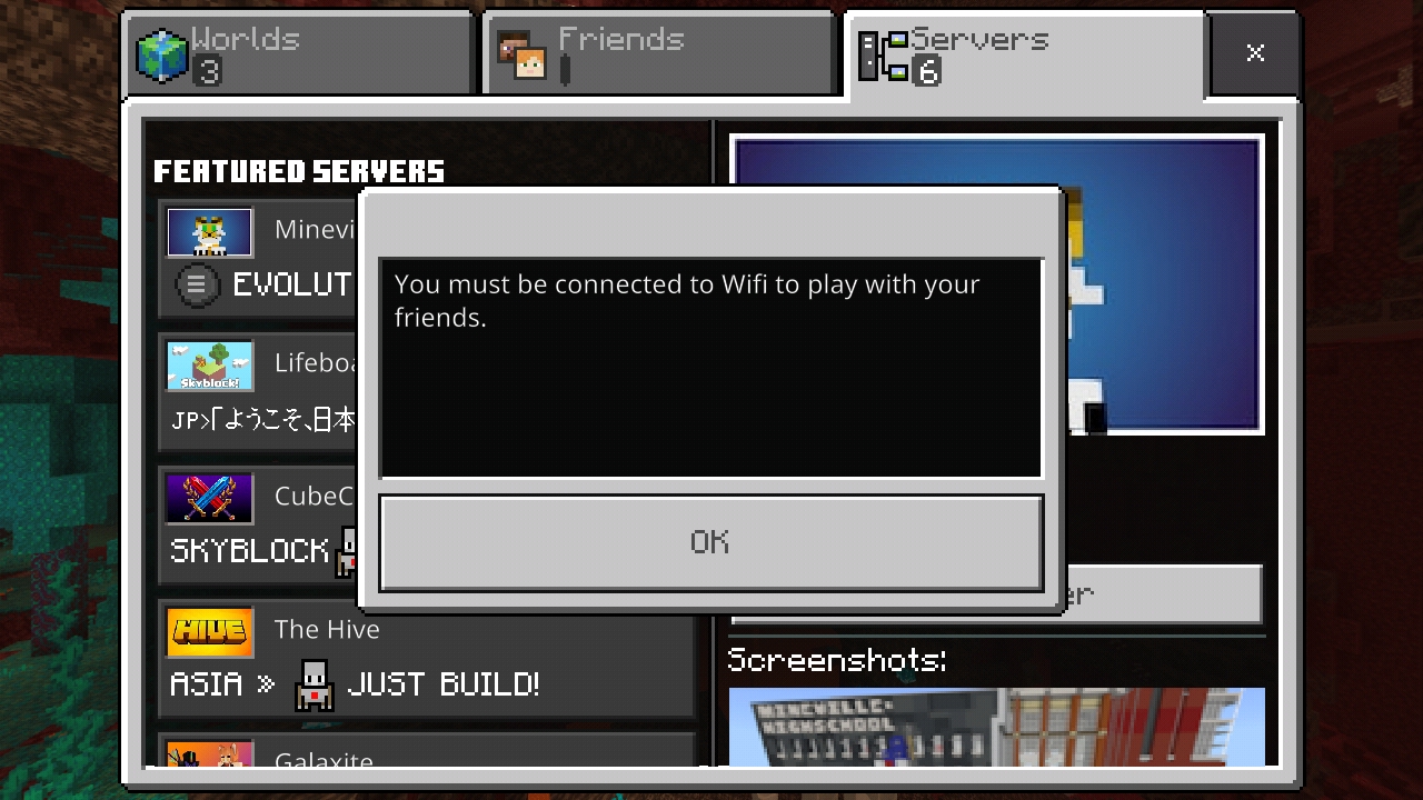 Before update 1.16.100, I used to play with my friends on servers via mobile data and there was no need to connect to wifi, but after this freakin update, whenever I try to play on servers, the popup says "you must connect to wifi to play with your friends". This happens even after turning on 'use cellular data' in settings. This is so annoying, it supposed to connect to servers with mobile data but somehow it's still asking for wifi, this is too much irritating, like not everyone carries a wifi hotspot with them all the time, please fix this ASAP. I hope you don't want to lose mc players and you won't like players asking for refund...