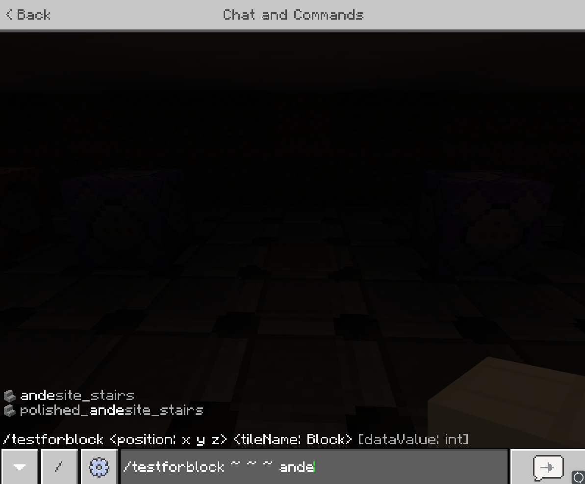 ‘Andesite’ does not appear as an option when using commands such as ‘fill’, ‘setblock’, ‘testforblock’, etc