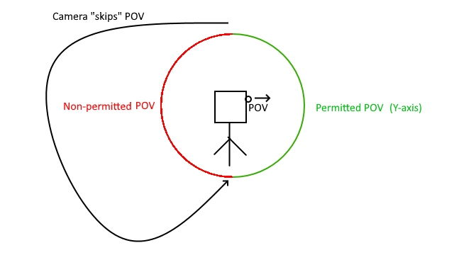 See picture attached. Hypothetically, when the finger/mouse is moved up very quickly, the game is allowing the camera to "skip" the non-permitted POV (camera angles) as long as the next frame would have a permitted camera angle. This is also easier to reproduce on a low framerate.
