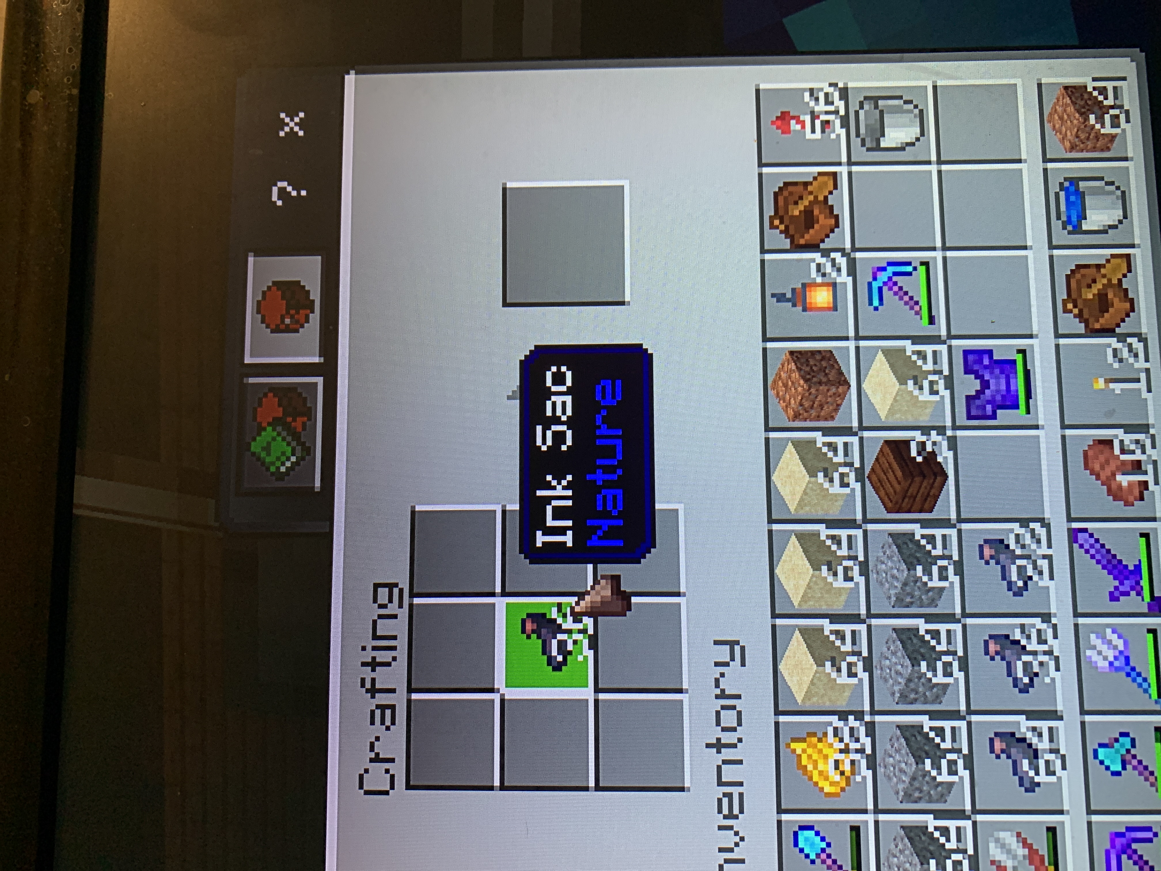 When Ink Sacs are bought from a Wandering Trader, they do not stack with Ink Sacs dropped from squids. The Trader Ink Sacs also cannot be used in crafting at all.