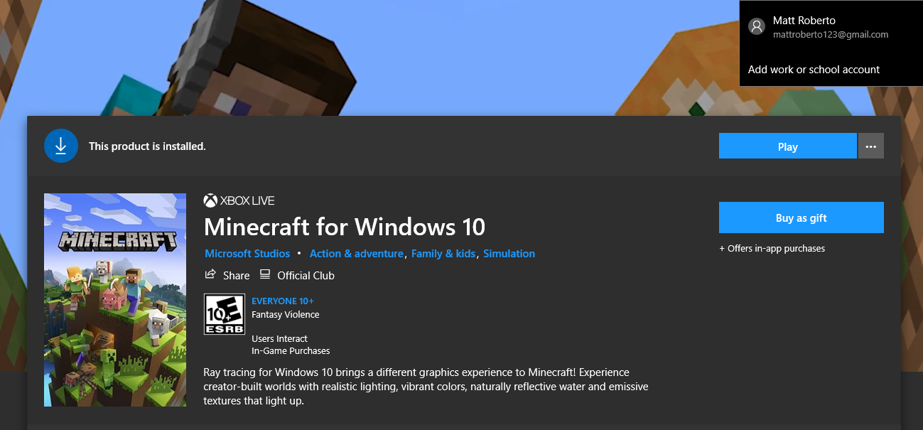 I have purchased Minecraft bedrock edition on my Microsoft account and have owned it for a few years now. I logged on recently and it says that I have the beta version of the game and to purchase the full version of the game in order to access all its features. However, when I go to my games library on the Microsoft Store and the Xbox app, it already says that I own the game. I checked my achievements screen in the game and it says that I have 15 hours played and numerous achievements already unlocked. Any help here would be appreciated. I have tried re installing, and signing out of my account, and signing back in. I cannot seem to figure out where the issues lie. I am certain that the game is on this account as the Microsoft store says that I already own the game. Please help. Thank you