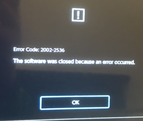 heres a screenshot while it was loading with no menu pop-up, and the crash error afterwards.