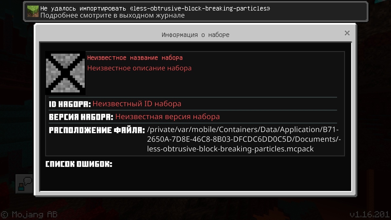 When downloading third-party mods, textures in the file (.mcpack) gives a download error.