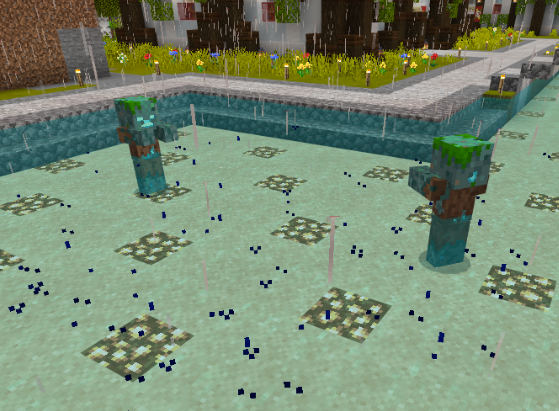 Recently, drowneds have begun spawning in a large pool of water that should be drowned-proof and has been working since 1.16.40. The waters are 1 block deep and I've arranged the glowstone on the floor of it using a certain method to keep the light level of the waters to be at least level 8 at all times so drowneds shouldn't be able to spawn. The glowstone in the 1 block deep waters have been arranged to keep the light levels in the waters to be at least level 8+ at all times. This does work because during the day and night, drowneds don't spawn there. In fact, I've only seen them spawn when it thunders. So I did some research. Thundering is said to lower the sky light dramatically, allowing mobs to spawn in unlit areas during the day. The problem is, the internal light levels of the waters are already enough to stop drowned spawns (since they only spawn in levels 7 and lower). The decrease of sky light from thundering shouldn't be able to affect the internal light level of the 1 block deep waters from the glowstone as I've already said, the light from the glowstone arranged in this pattern already provide enough light to the waters to prevent drowneds from spawning during the day, night, and rain. I'm assuming it definitely has something to do with thundering and the effect sky light has on mob spawning.