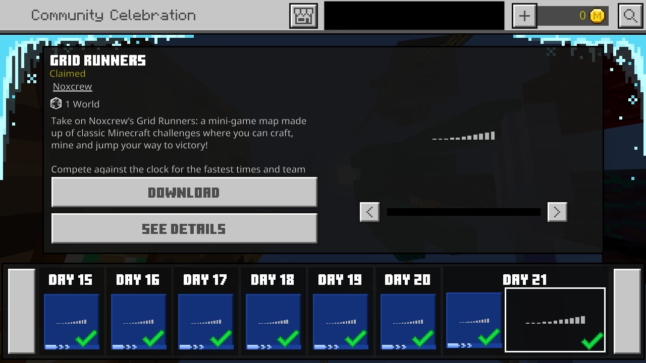 When attempting to redeem the Newest map from the community celebration section of the Marketplace, where Terra Swoop Force shows up on my iPad as well as my friend's non-Nintendo Switch devices, it shows Noxcrew's old map, "Grid Runners". Downloading it and playing it results in the normal Grid Runners map from 2018. My friends from Nintendo Switch have encountered the same issue. I have restarted both Minecraft and my device, multiple times, both to no change. I have also tried signing out and signing back in, still no change. As fun as Grid Runners is, I would love to see this bug fixed. Thanks for all you do Devs!