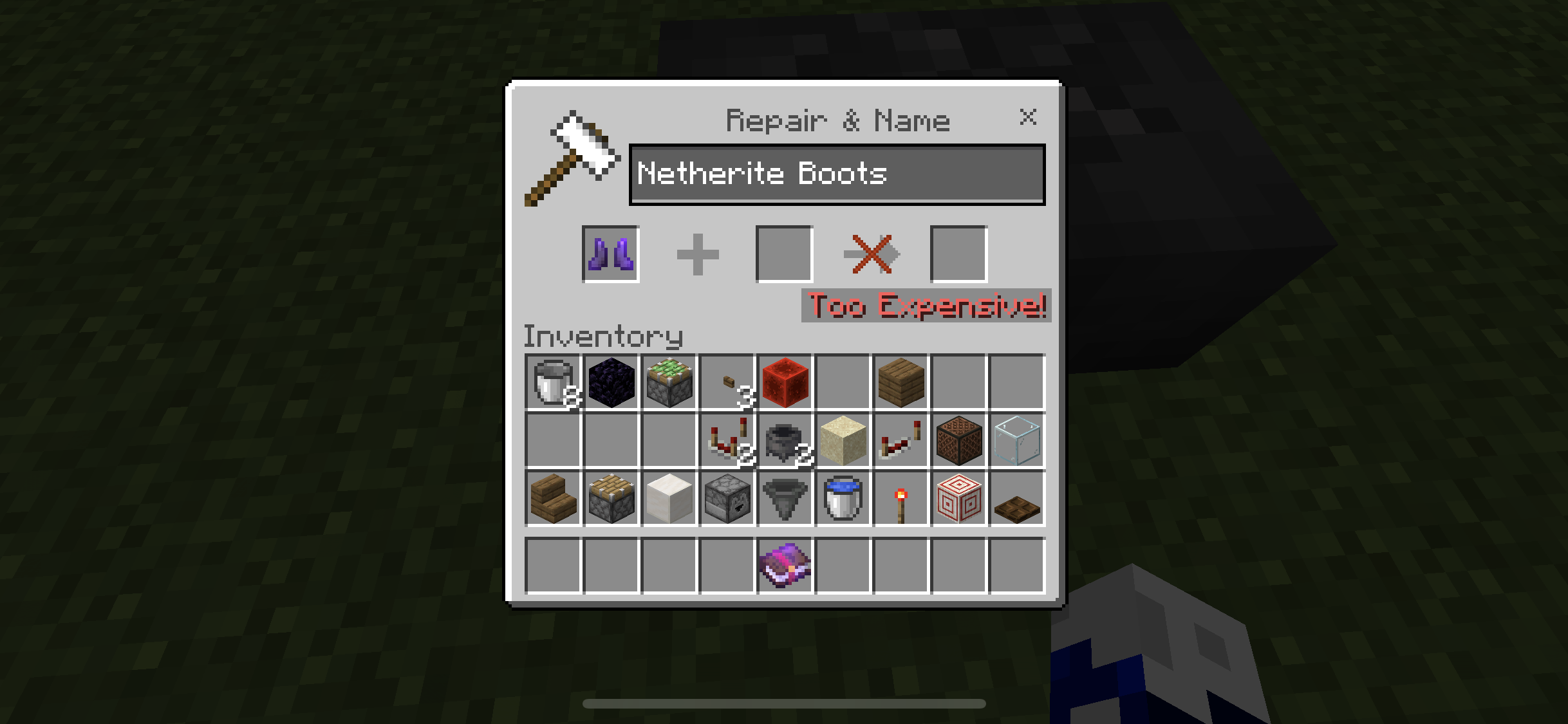 When I enchanted my netherite boots to the point where the anvil said too expensive I realized I didn't put on all the enchantments I wanted so I disenchanted it using a grindstone so I could restart. But when I put the newly disenchanted boots in the anvil it still said too expensive even thought they were plain netherite boots with no enchantments.