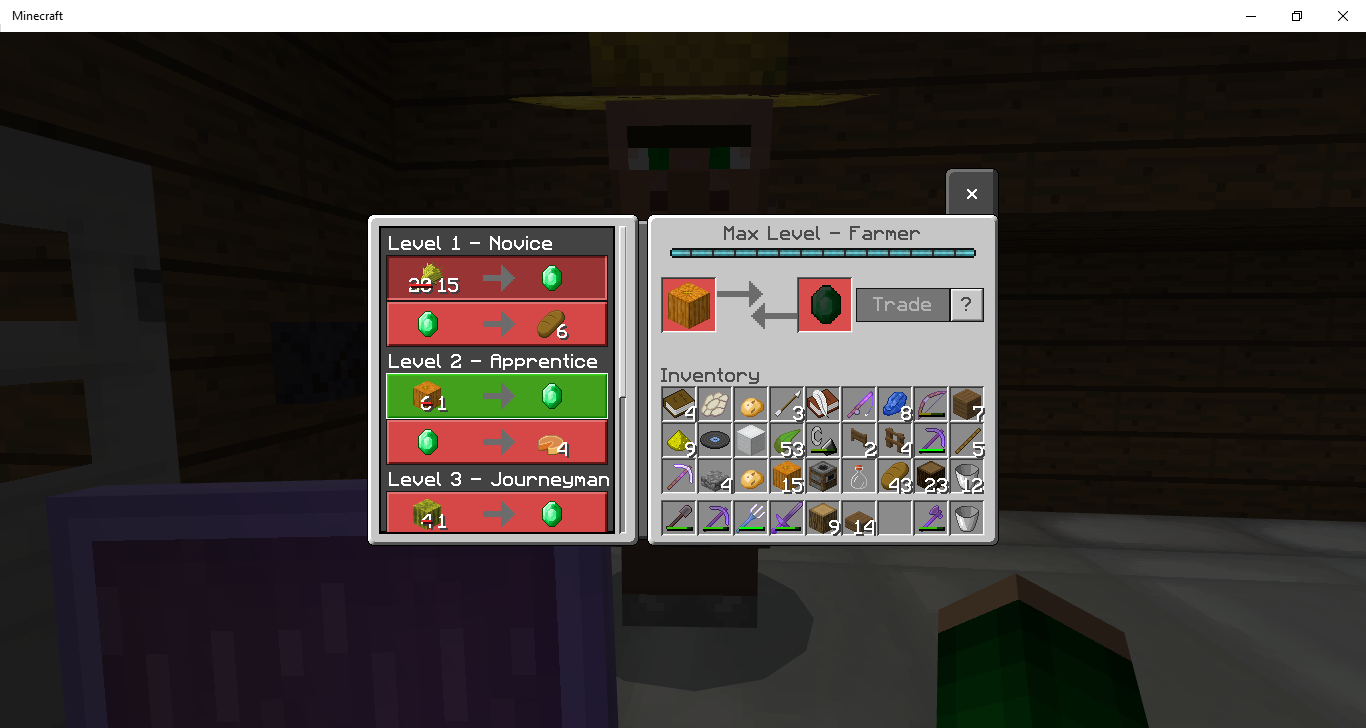 In my survival world, i made this huuuge pumpkin farm and got a villager who trades 1 pumpkin for an emerald, this took days of hard work. But when I try to trade the pumpkins, it doesnt take them when he clearly has a trade for pumpkins. Screenshot below.