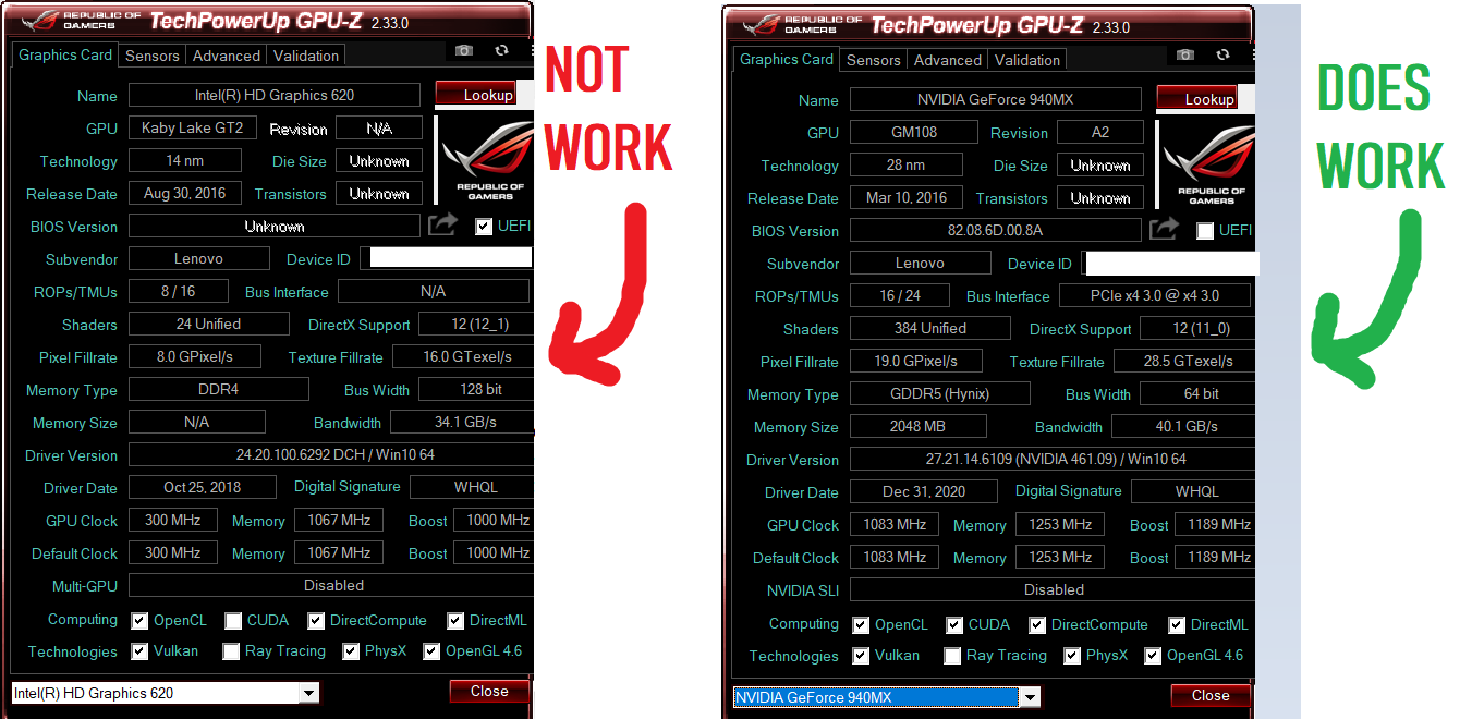 I attached my both GPU specs and how does the game look like on UHD 620 GPU.
