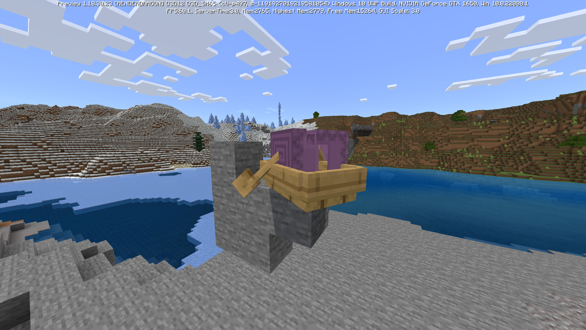 3. Place a boat and row it into the shulker, dismount the boat.