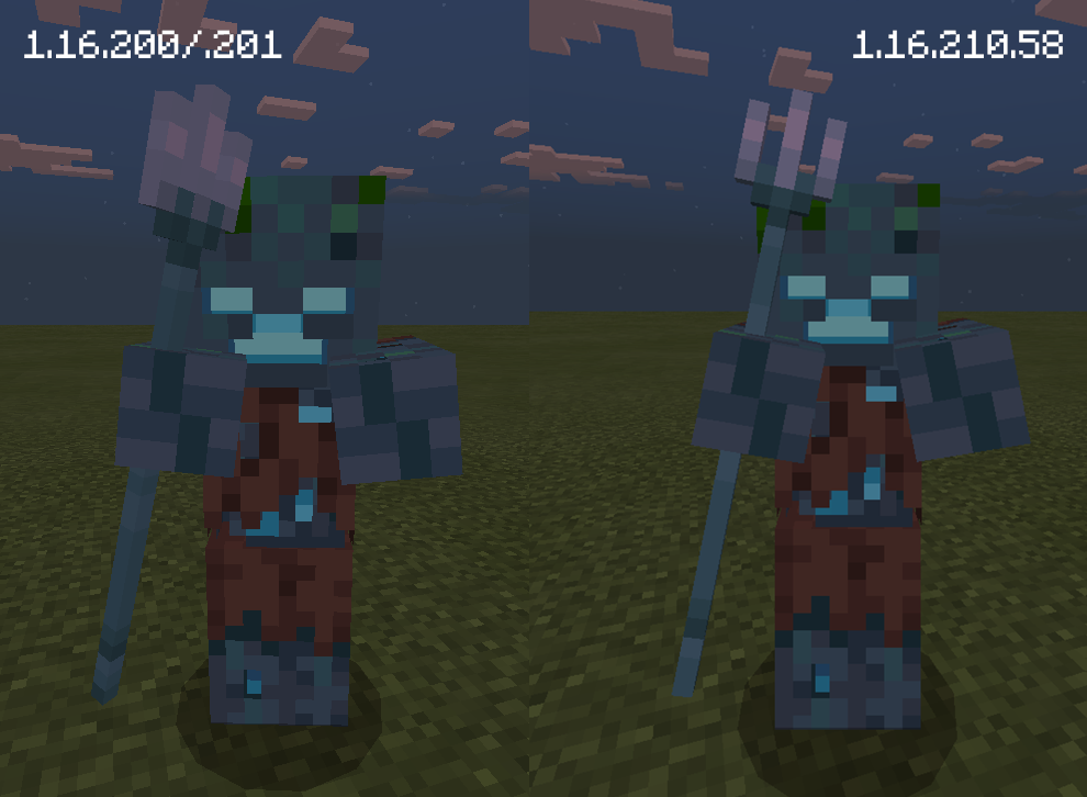 The trident is positioned incorrectly in entities' hands. It's no longer slightly rotated and it's slightly raised.