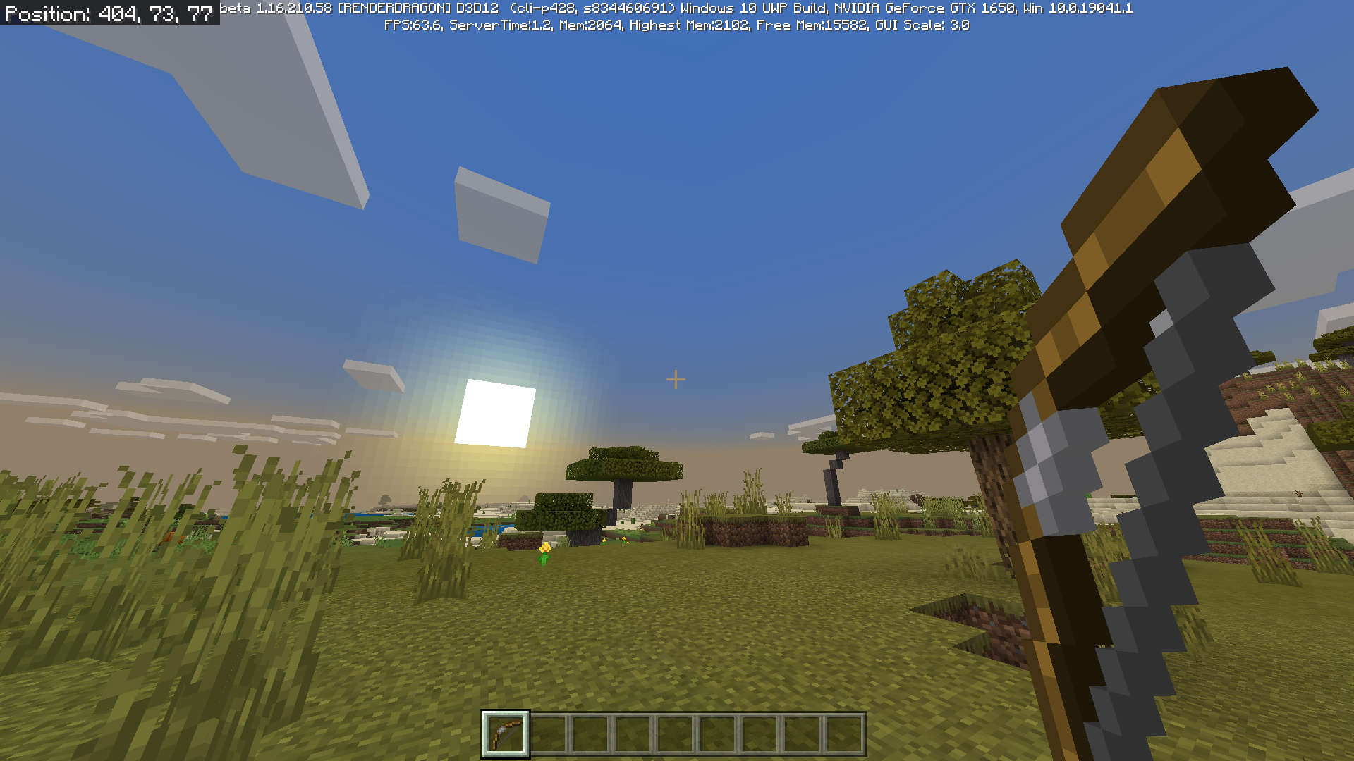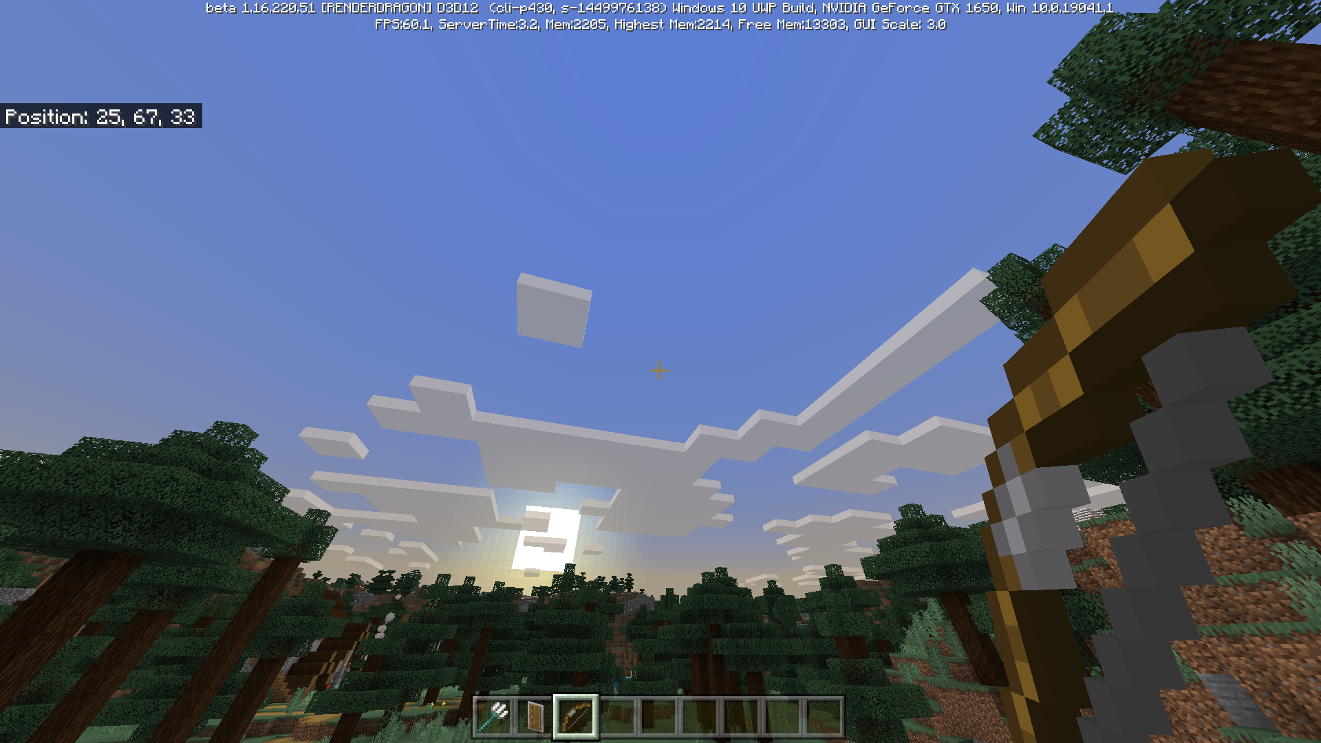 1. Hold a bow and shoot with it, and compare between previous version and the latest beta