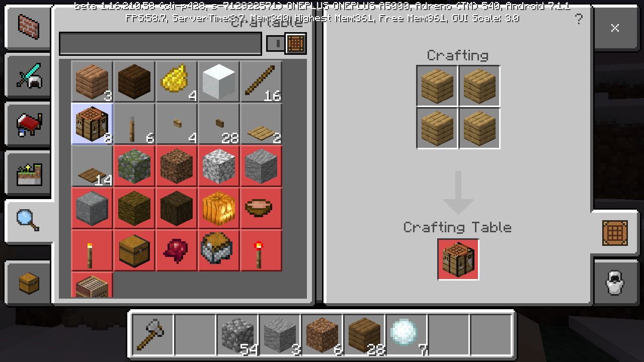 I can still craft the Recipe which don't need crafting table, but yet I have to craft them on crafting table, It looks like the first 4 slot of crafting grid is misaligned I need to rearrange basic crafting to following 4 Slots Image for Explanation