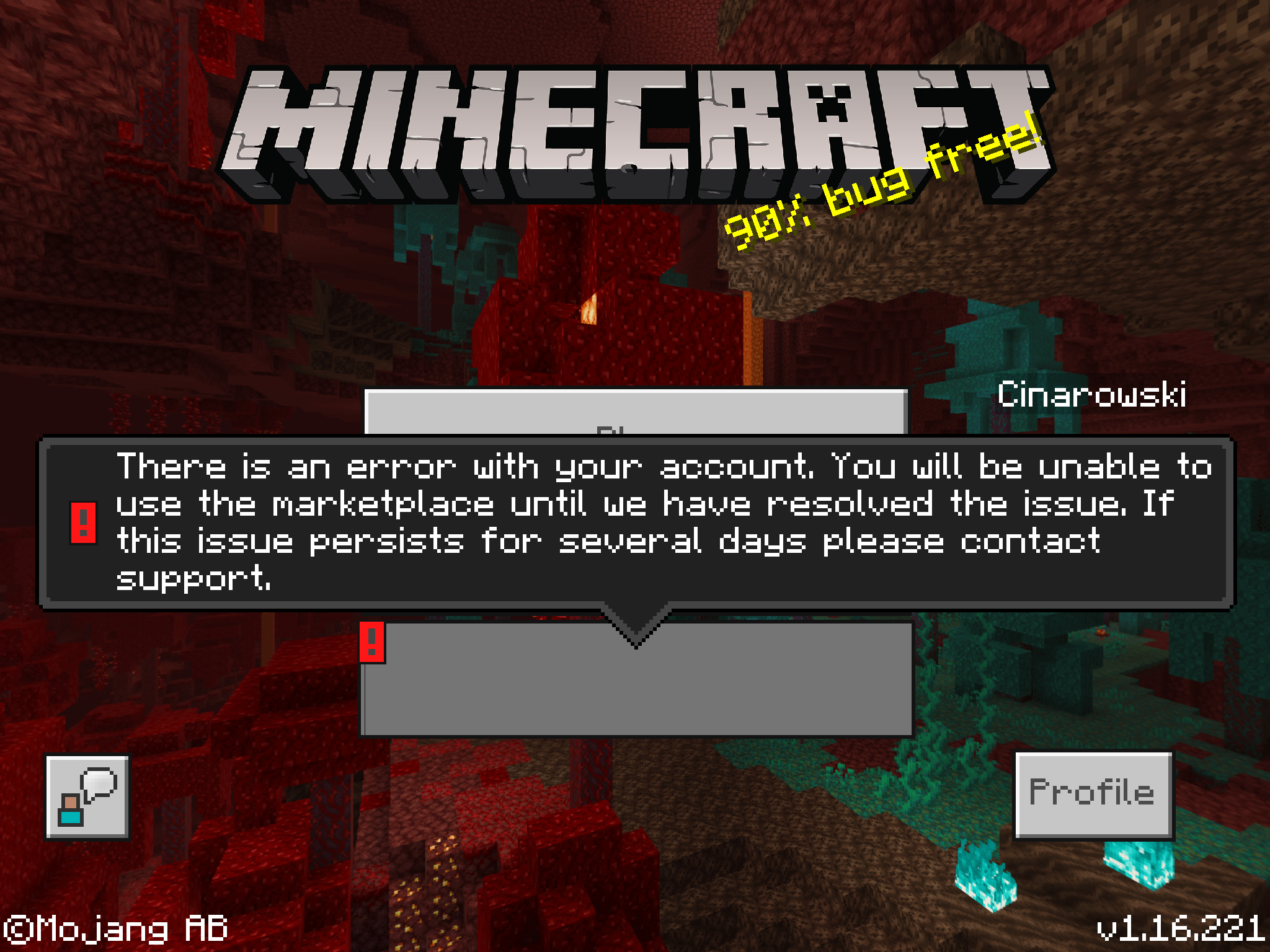 Windows 10, Minecraft 1.16.210 - same error for almost a week "There is an error with your account. You will be unable to use the marketplace until we have resolved the issue. If this issue persists for several days please contact support". Nothing worked for me, uninstalling, resetting etc.