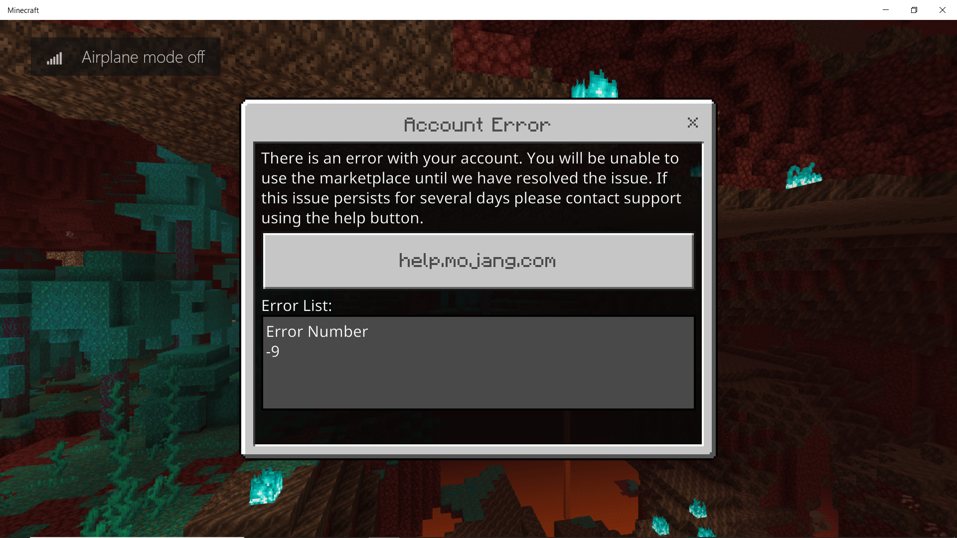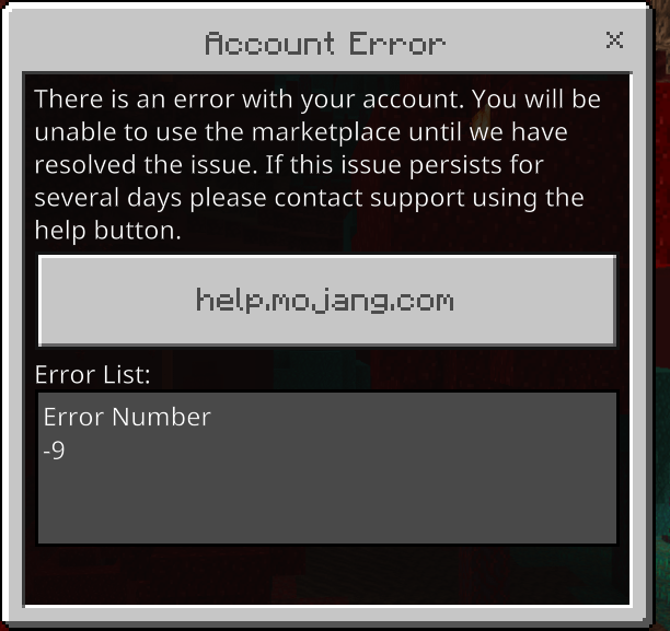 When I go to login, my Microsoft account info is all there and correct. But when I press the actual sign in button, I am taken to the Error 9 screen. I cannot access the marketplace or my realm. This has been ongoing for at least a week, and my realm hasn't been accessible to other players for at least as long.