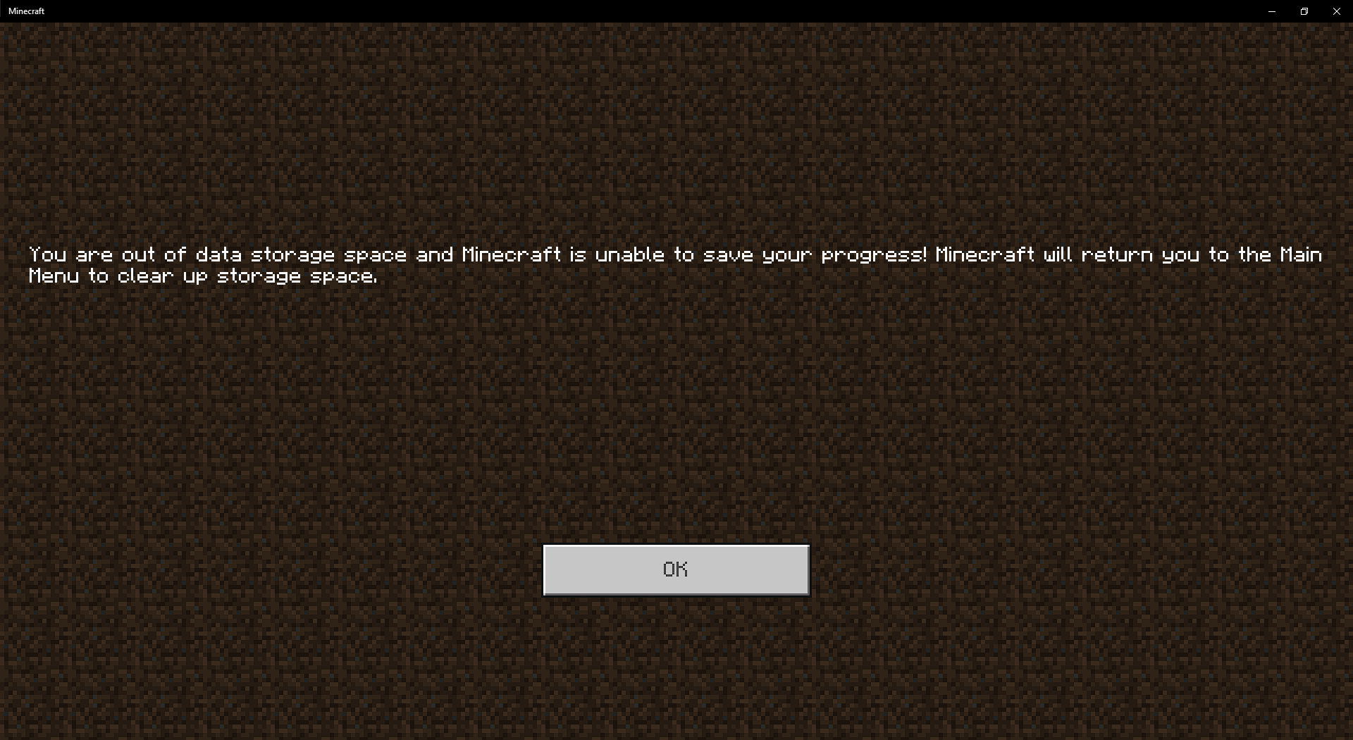 Other times it starts to load (and even play for a moment) then I get "You are out of data storage space and Minecraft is unable to save your progress...".
