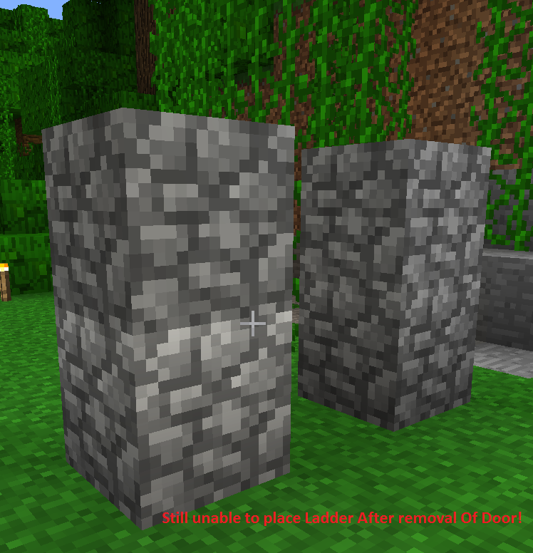 Stage Three = Now both door and blocks next to door(cobblestone) have been removed and replaced ladder can be placed on block.