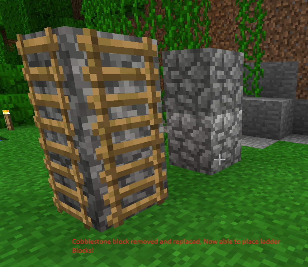 3) Replace block just removed, now able to place ladder block!