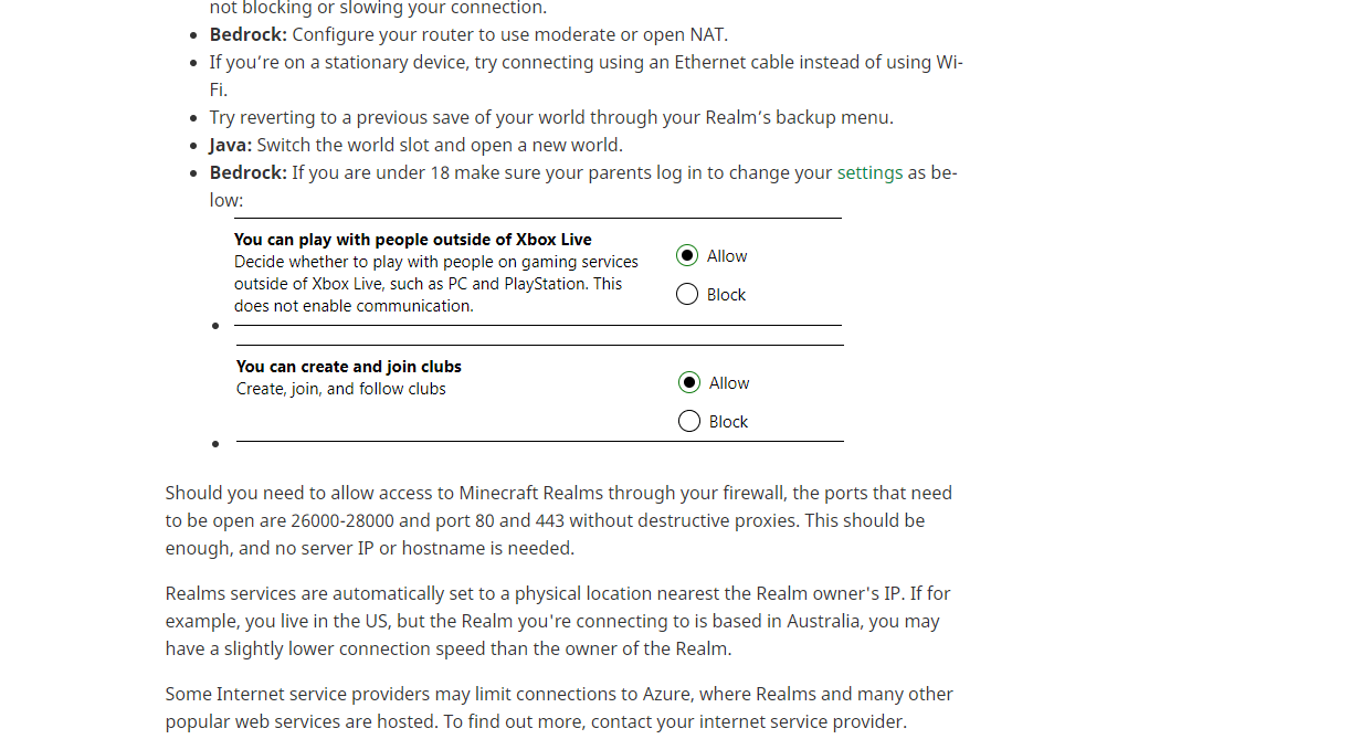 So I'm trying to join my friends realms on PS4(I'm on PC). I log onto Minecraft after a couple months of not playing. I try to join their realm but it a popup tells me that I can't join them because I haven't enabled my account to ensure online safety settings which I already have since, I had played with others before with this enabled. I created a new account, I went to Microsoft help and all articles told me the same thing and it was to enable this setting. I don't know what to do and I cannot resolve it. Please help