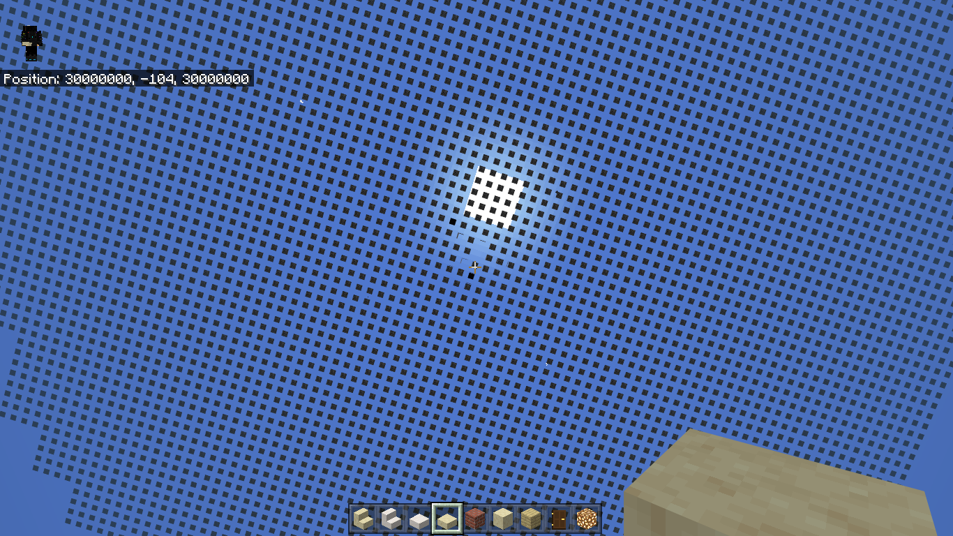 So I was about to put a bunch of deny blocks (far away from spawn because im building a house there) And when I teleported real far away, (/tp ~300000 ~ ~300000) The movement became choppy.. Not only that, when I tp to 30 million x and z, Everything becomes distorted?? Please fix so I can do experiments in my world. I also can't move at y 30million