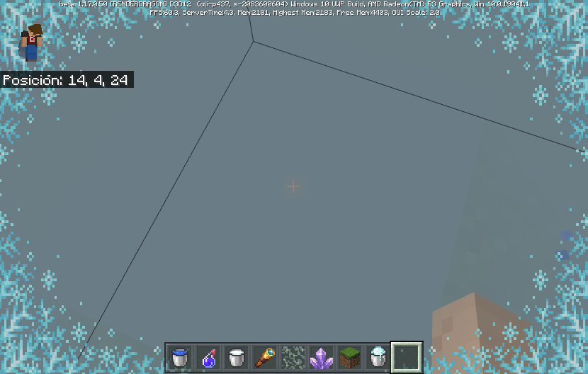 When entering lava or the powder snow block, the player's sight on the screen appears with a green or gray outline, this happens when entering lava or powder snow, it is possible to make it more visible when pouring a potion of night vision