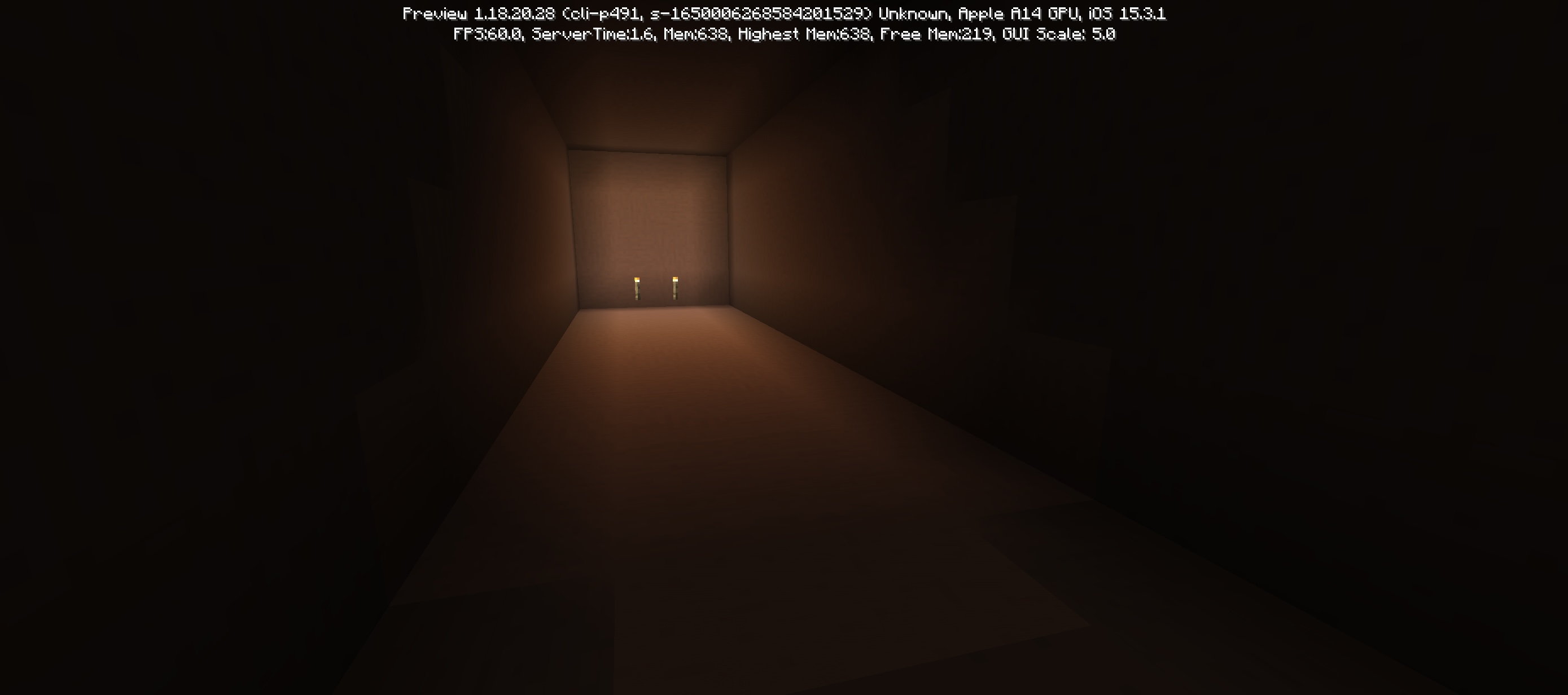 /fill ~2.5 ~2.5 ~2.5 ~-2.5 ~-2.5 ~-14.5 hardened_clay/fill ~2.5 ~2.5 ~2.5 ~-2.5 ~-2.5 ~-14.5 hardened_clay/fill ~1.5 ~1.5 ~1.5 ~-1.5 ~-1.5 ~-13.5 air/fill ~1.5 ~1.5 ~1.5 ~-1.5 ~-1.5 ~-13.5 air/fill ~ ~-2 ~2 ~1 ~-2 ~2 torch/fill ~ ~-2 ~2 ~1 ~-2 ~2 torch3. Navigate to the end of the corridor