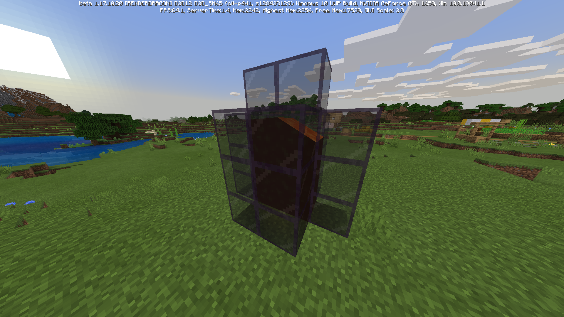 When you place down flowing lava or water inside the tinted glass, it looks dark on the side. This was fixed in Java 1.17 Pre-release 1 (MC-203661).