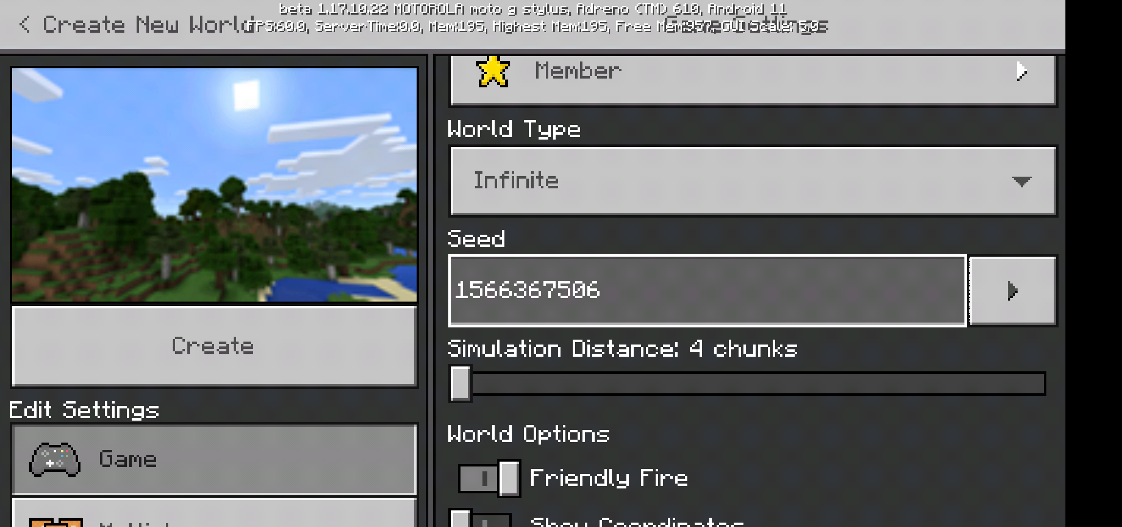 4. Check to see if the seed is the same seed you inputted before pressing Create.