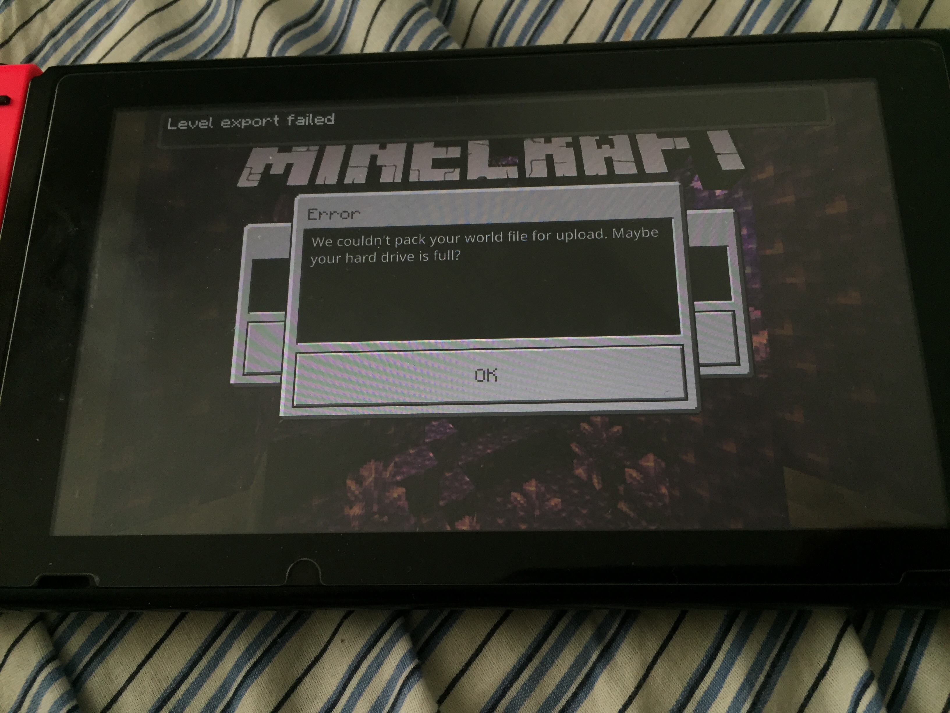 And it is not full, I have a lot of free space on my micro SD card and in the internal memory of my Nintendo Switch and it still cannot be done, I already tried with copies of the world, I restarted the console, I tried with other worlds and nothing, it appears to me the same.