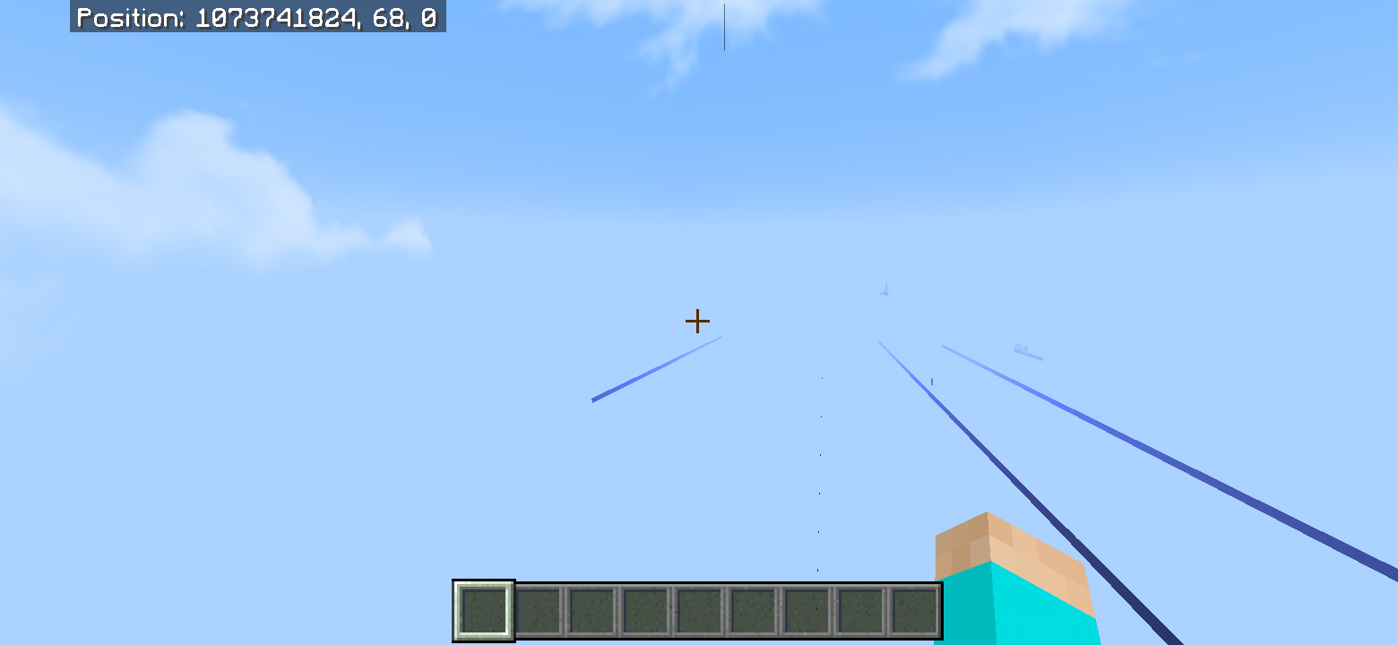 Near X/Z: ±2,147,483,648, the game crashes, as this is the 32-bit integer limit. However, not all devices are able to reach this point. Increasing render distance on near coordinates can cause the world and game to crash