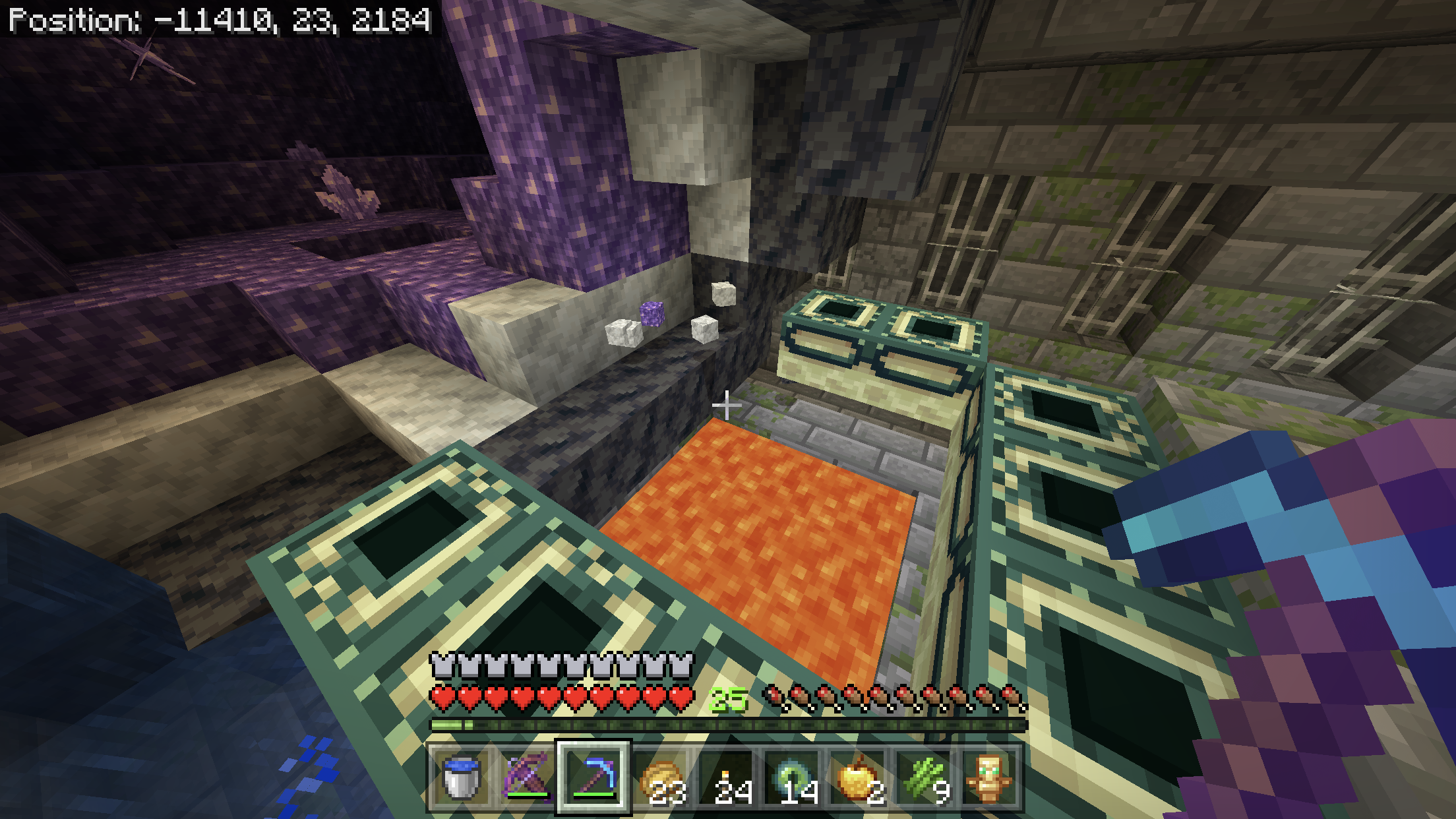 When I was playing in my Minecraft world I had planned to go beat the game(killing the ended dragon). When I got to the portal room I saw that a geode had spawned on the back of the portal, removing four of the needed portal frames