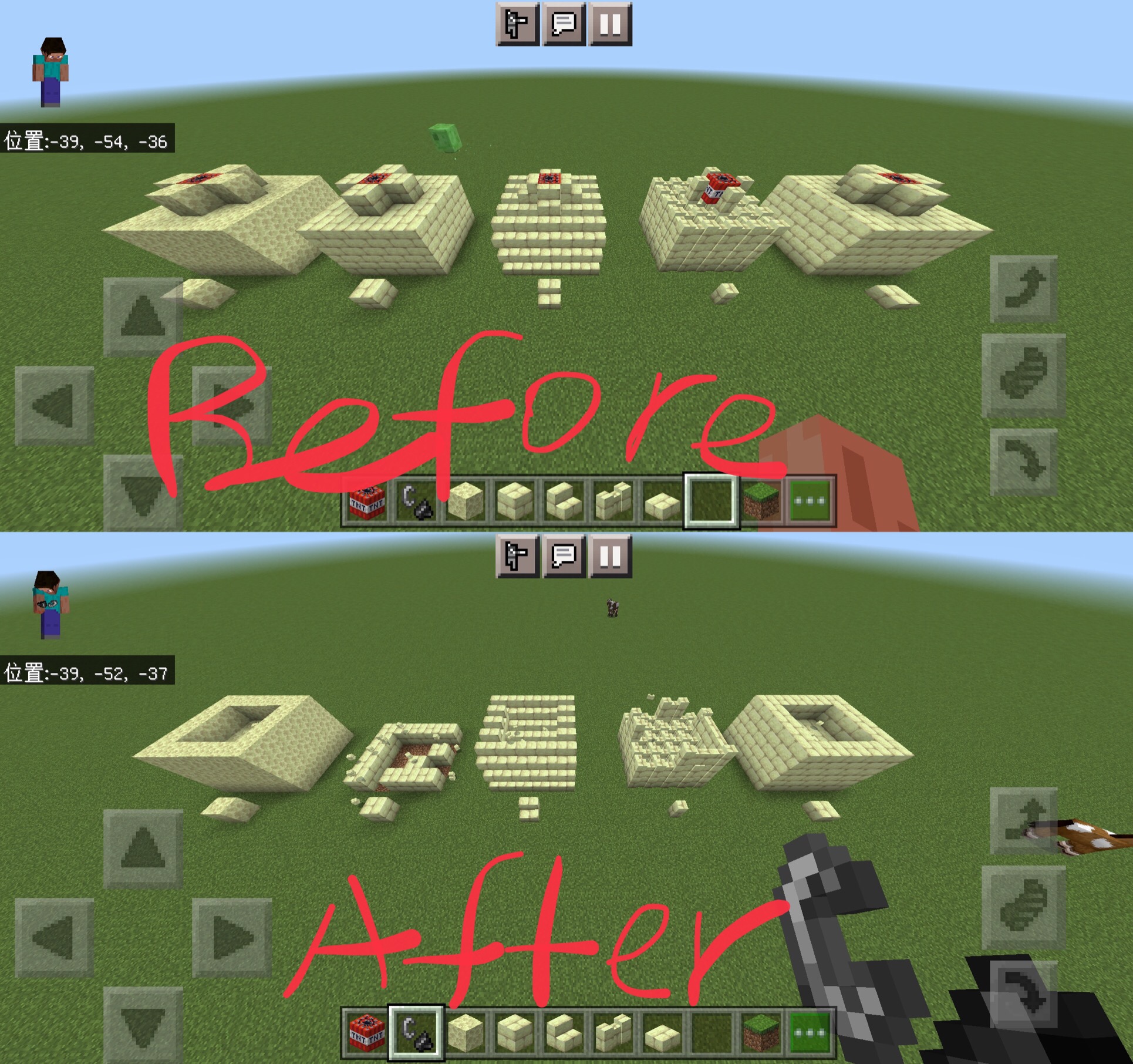 2. Place down a TNT on each of those layers and blow it up.
