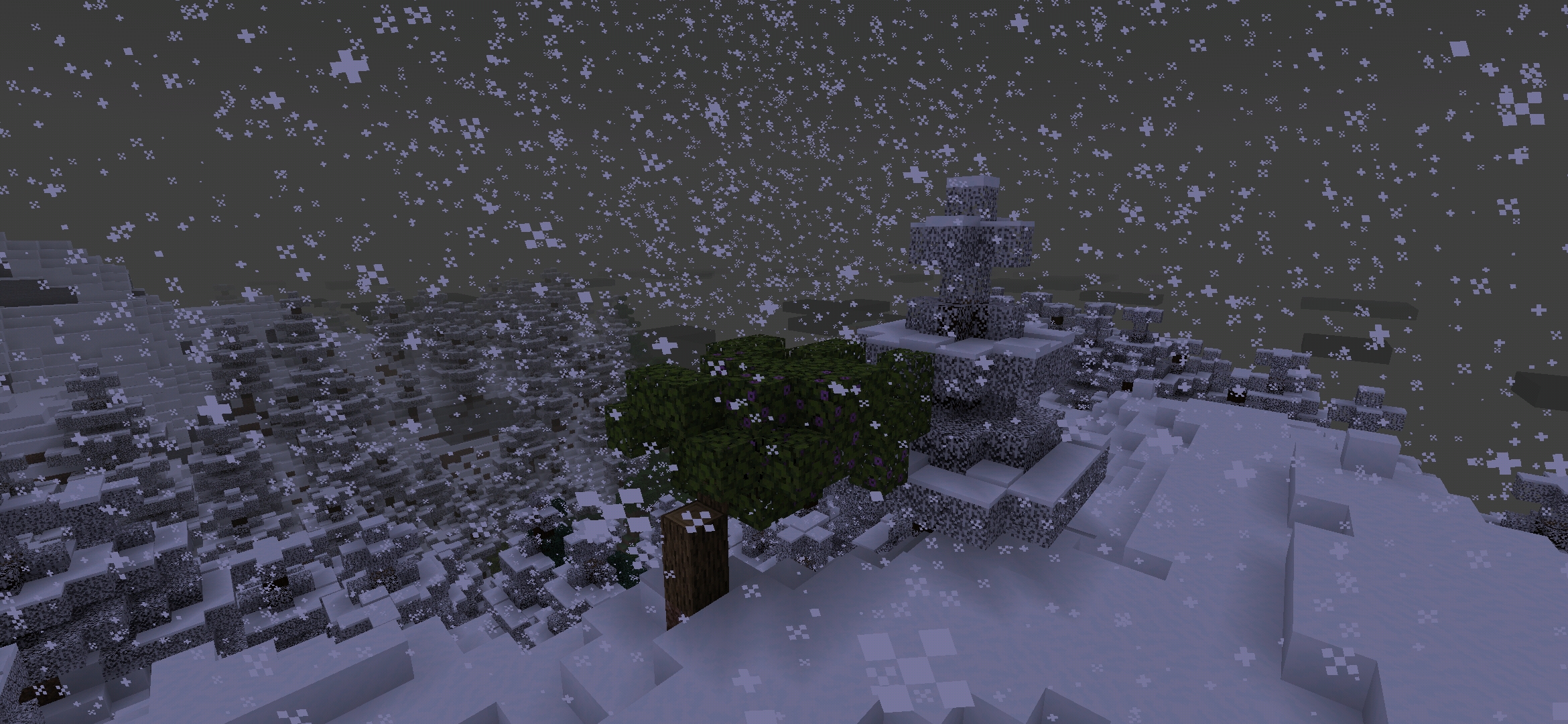 On Bedrock Edition, during a snowfall, all the leaves of the trees turn white, but this does not apply to the leaves of the Azalea. Check:
