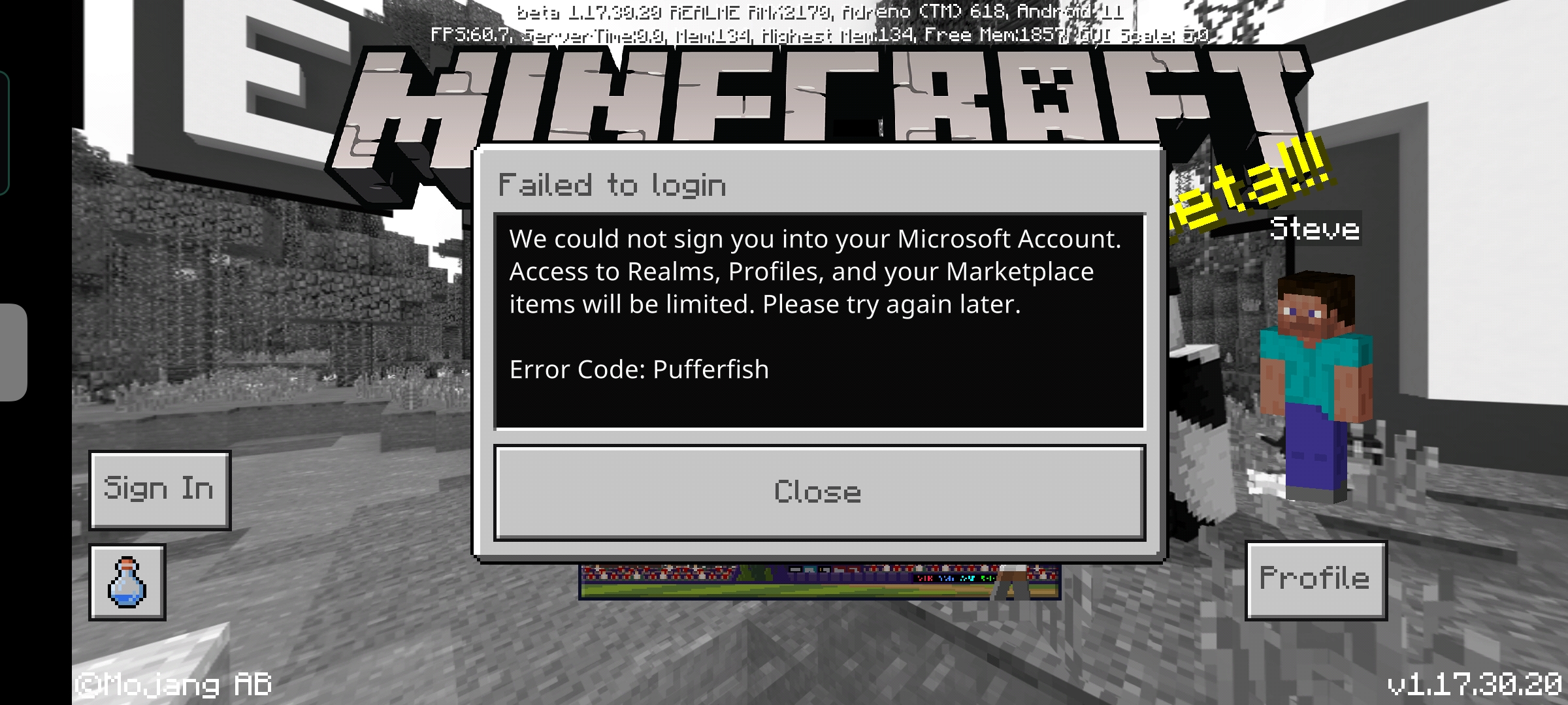 After opening game no log in with account. Tried to several times to log in but it shows some error to log in. I am unable to play my world. Even I can't create new world. Please resolve ASAP.