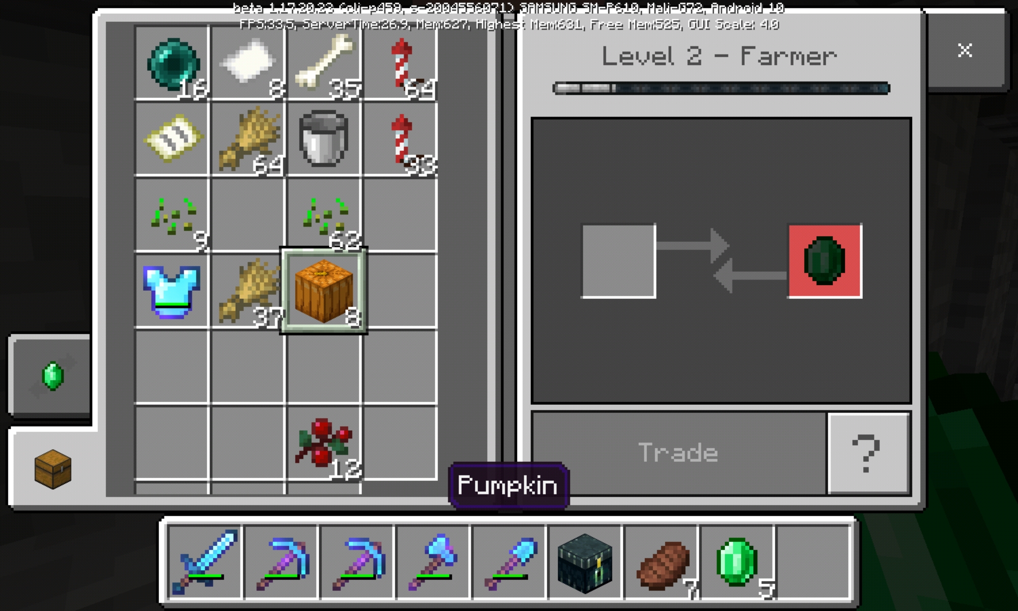 So, in the screenshot it shows that I have 8 pumpkins and the villager needs 6, but when I put the 8 pumpkins in the trading slot it says that the trader does not want that trade.