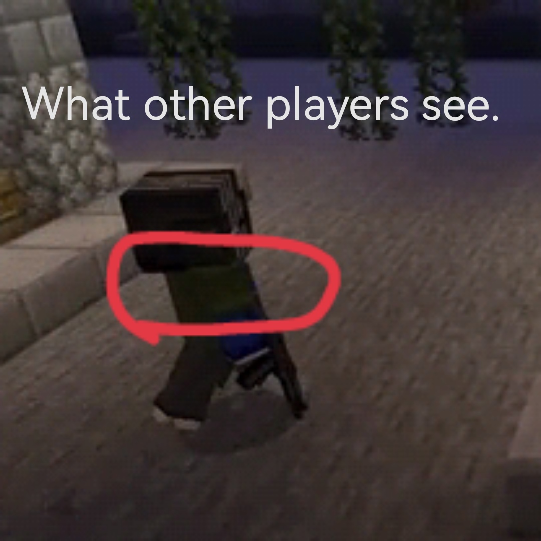 2. The players who join the multiplayer use the MoLang "query.equipped_item_any_tag" and "query.equipped_item_all_tags" of the resource pack animation controllers.