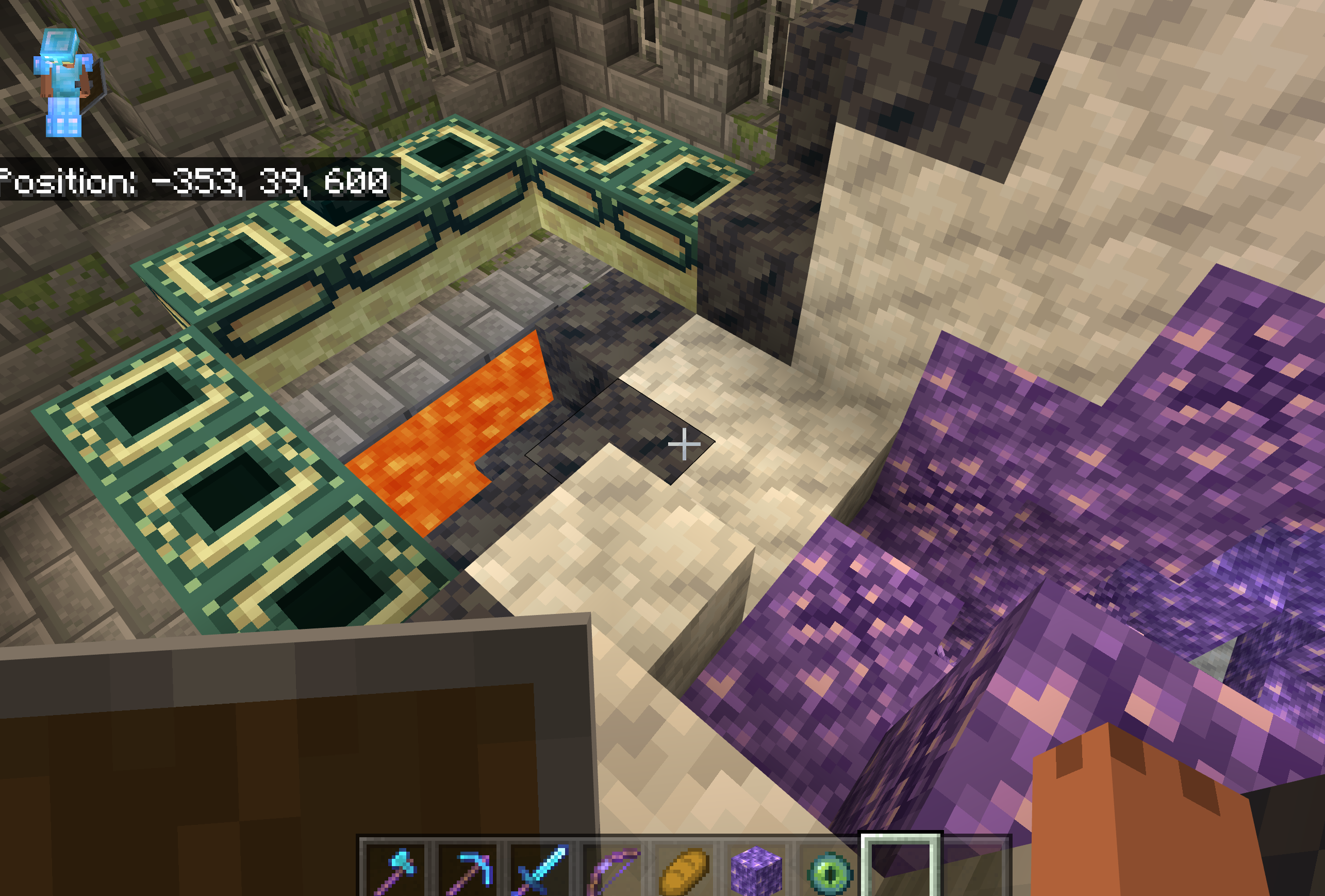 So I was in my Minecraft world ready to get into the end and finally slay the ender dragon but it was very difficult to find the End portal. And so I went and started mining around the stronghold to see where the Portal room and found a geode while mining through one of the walls and so I decided to follow the lines of mossy cobblestone and mined down. Good news, i found the portal room, Bad news, the geode i found earlier intercepted the end portal leaving it with only 8 of the 12 frames still in tact. I was very disappointed to have been searching the whole stronghold for a straight hour to find this disappointment. I'm hoping this bug can get fixed so I nor anyone else has to experience this in their Minecraft world again.
