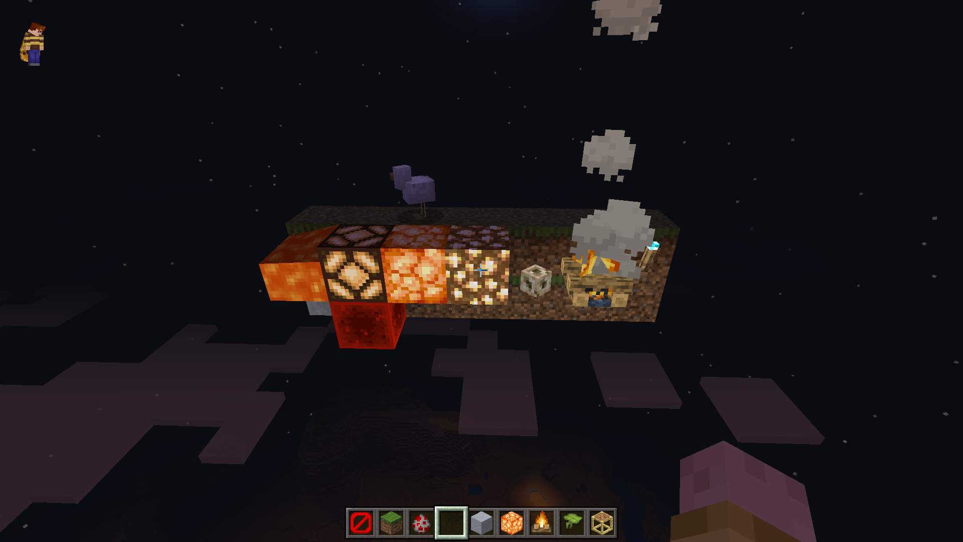 Also, the player will glow only on light emitting blocks and over air containing light (but only at 257/231 heights).