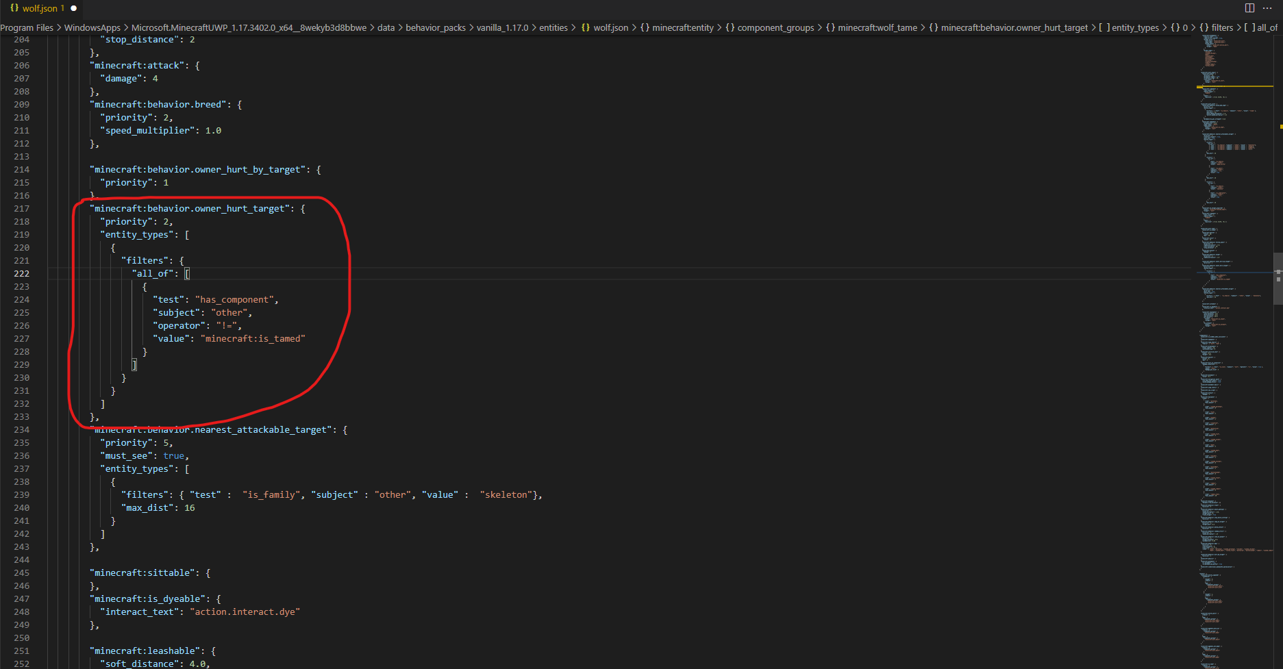 First, when the owner attacks other pets tamed by the owner, and the pet does not belong to the wolf family, the tamed wolf will quickly turn its attention to the pet, but will quickly calm down and will not attack. However, if the distance is close enough, the tamed wolf may still harm the pet tamed by the owner. Under normal circumstances, a tamed wolf should not attempt to attack other pets tamed by its owner, but if the pet being attacked is also a wolf clan, it will not attempt to attack. I found this problem in the wolf behavior file (of course it is possible that this problem already exists in an earlier version). The solution can be to add flagged exclusions (as shown below).