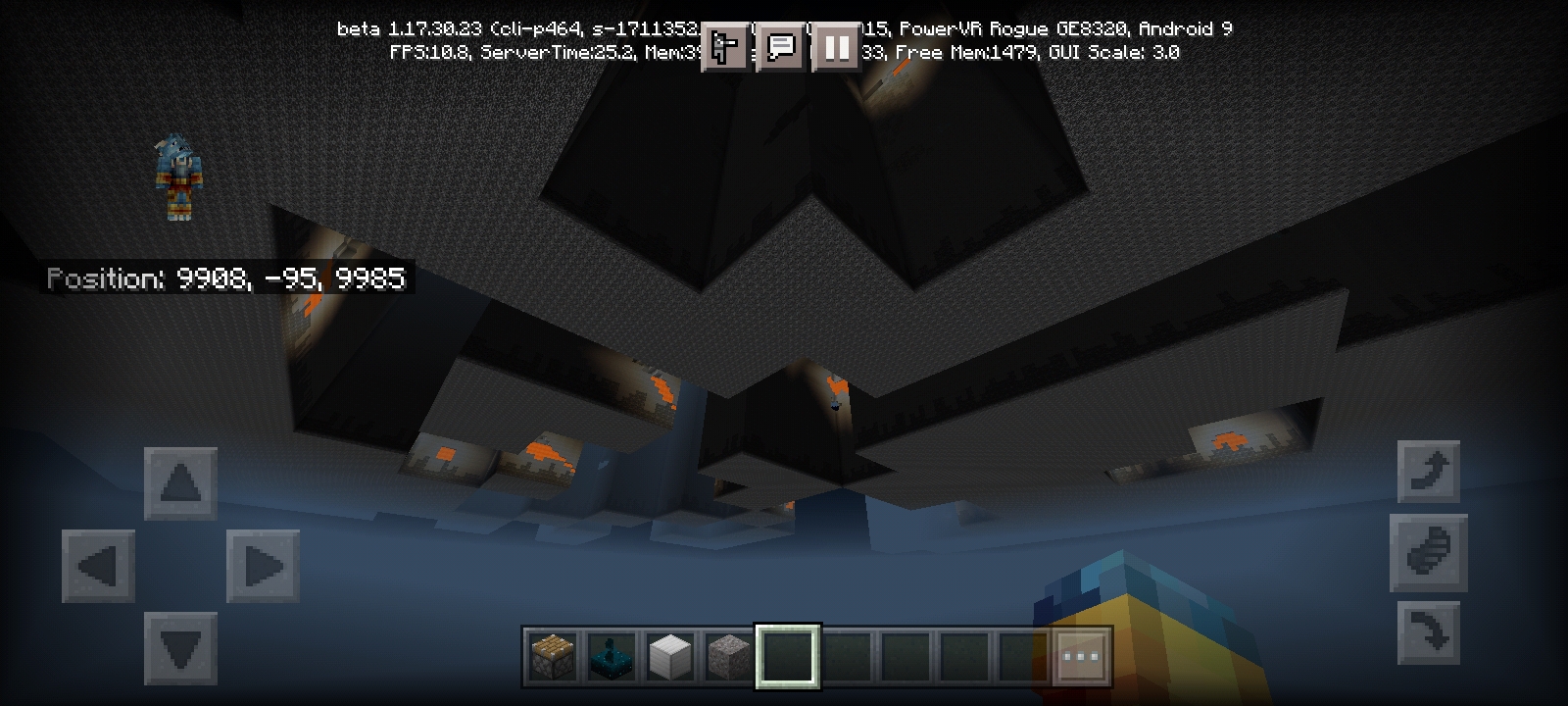 I recently opening the world, but after I using teleport to down, I got surprised results. My world got corruption and the huge negative y coordinates of chunk are failed to create like math error.