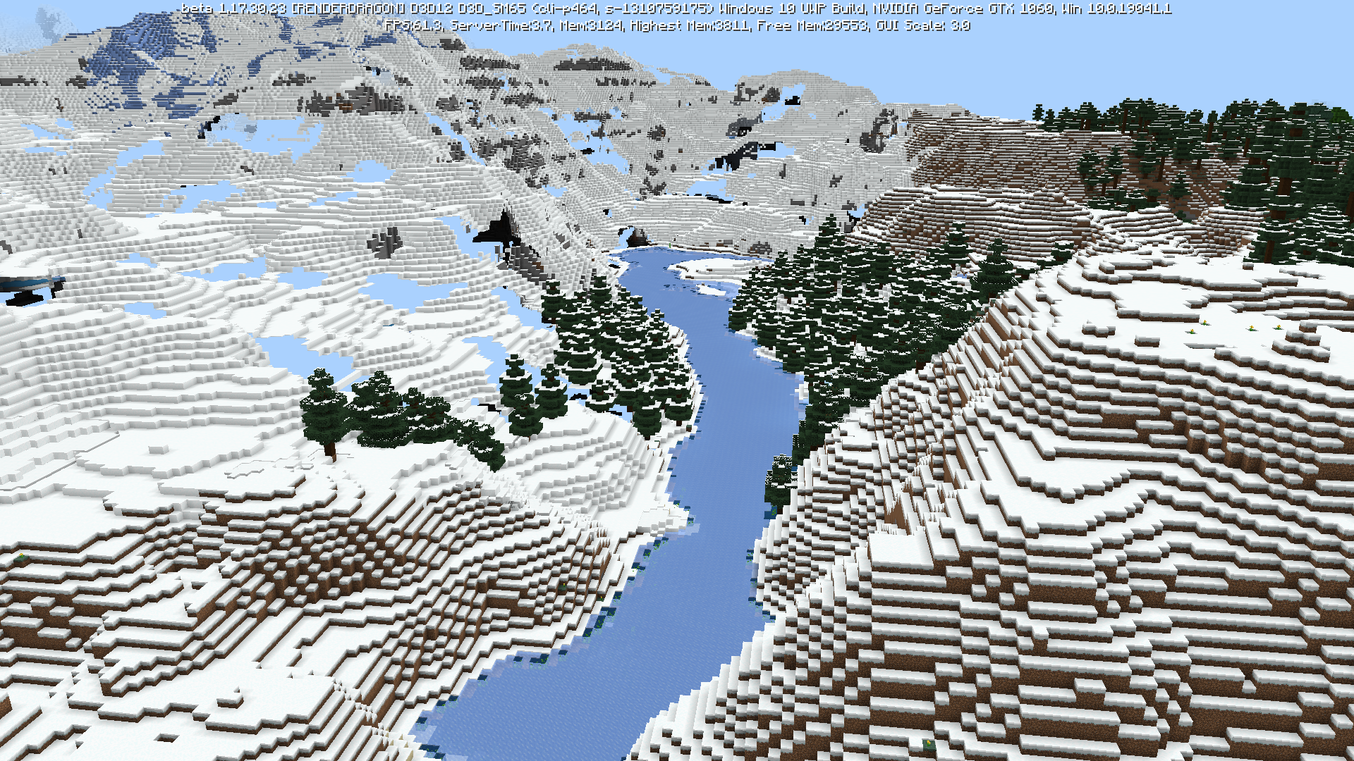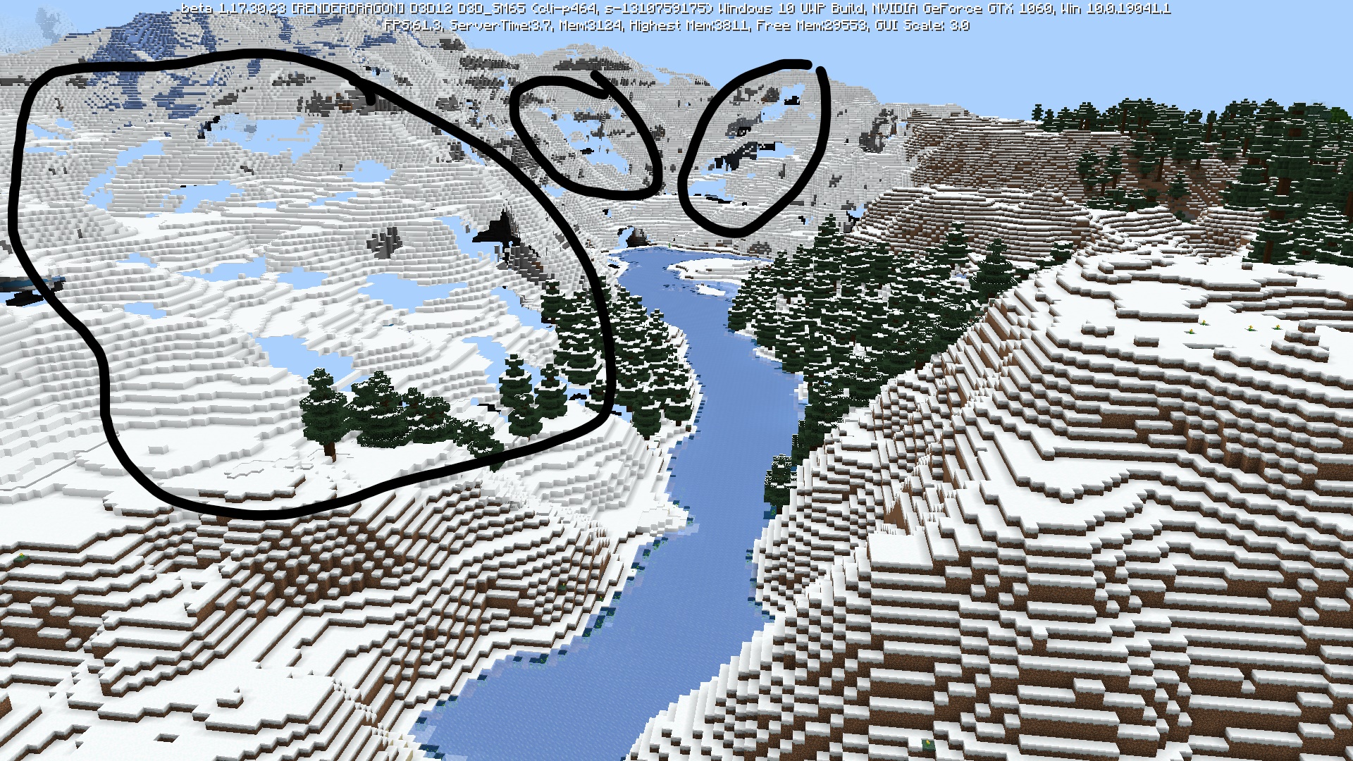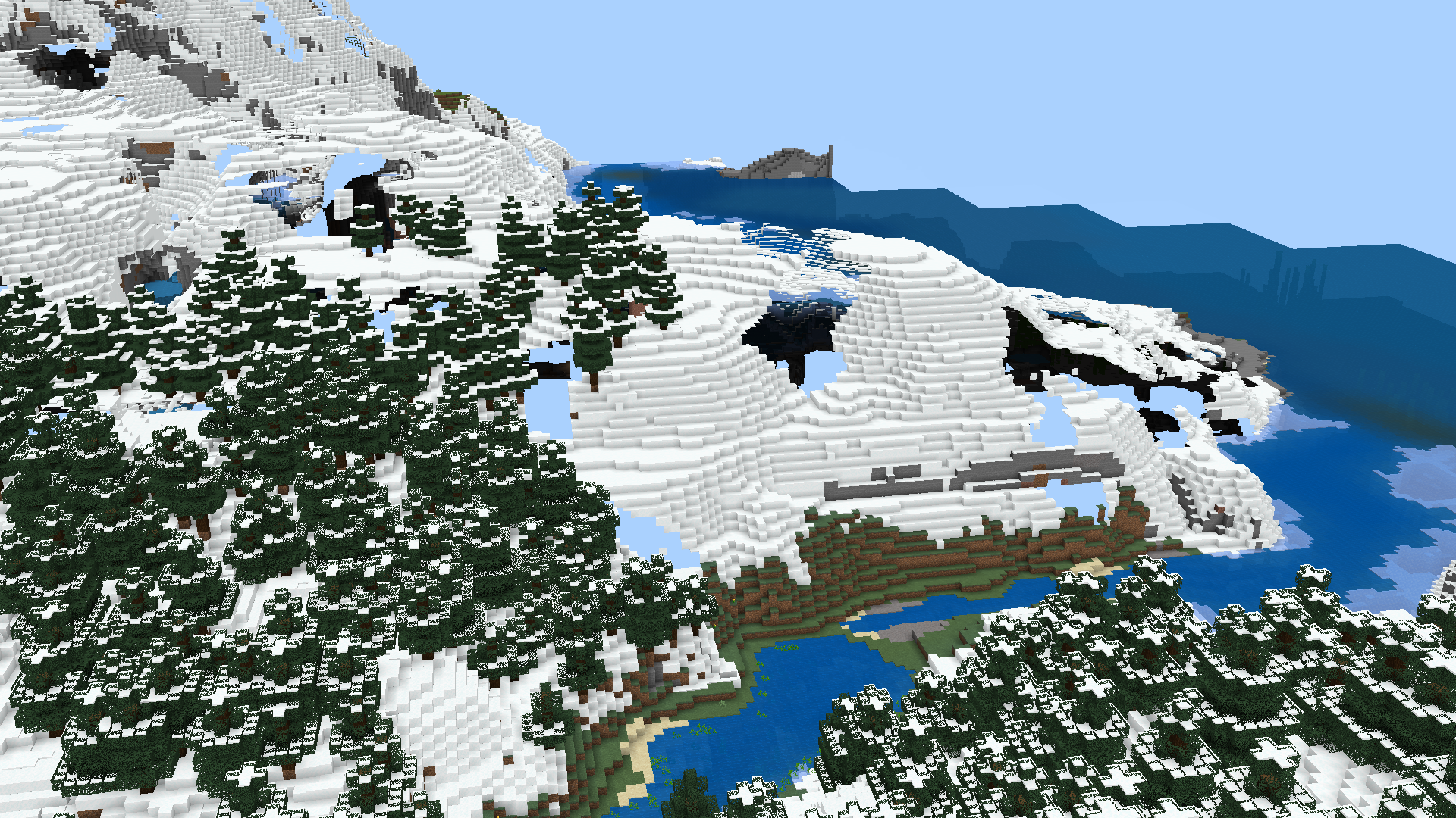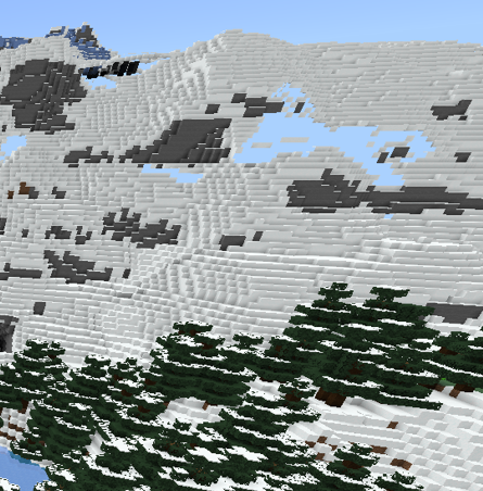 Powder snow doesn't render from far away, wich causes the player to see through the mountains specially in snowy slopes or mountain groves. This mostly happens with long render distances, but it is always noticeable.