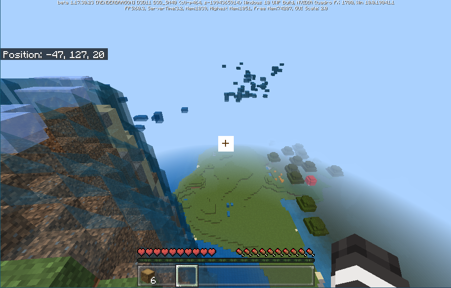 So Basically as you can see below my y level is about 128 before it was 62 and the floating water I did load this world in 1.17.11 before and below me is a huge cave with bedrock and command blocks but I couldn't take a screenshot of it.