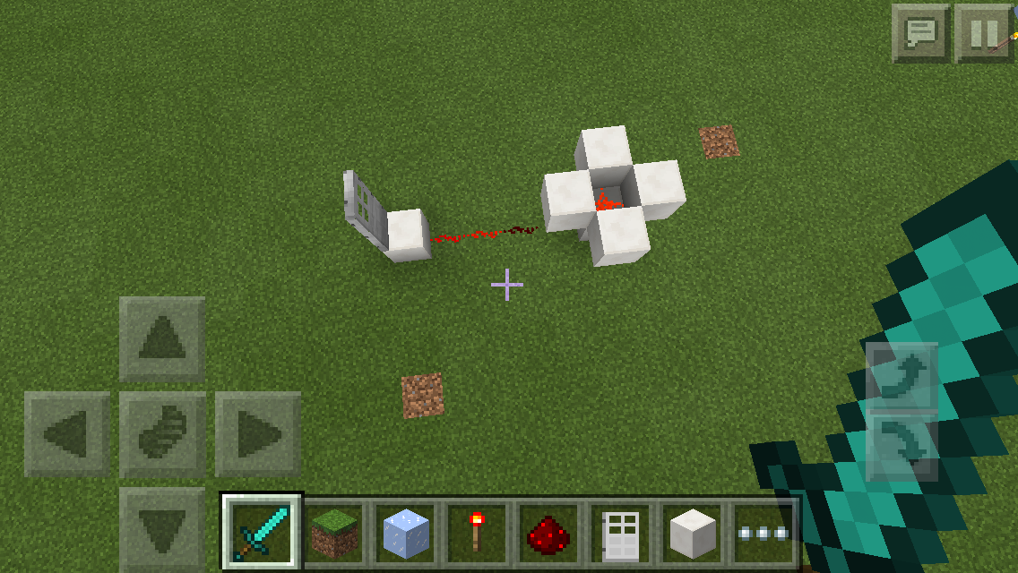 4. Make a trail of redstone dust from one of the torches to an iron door.