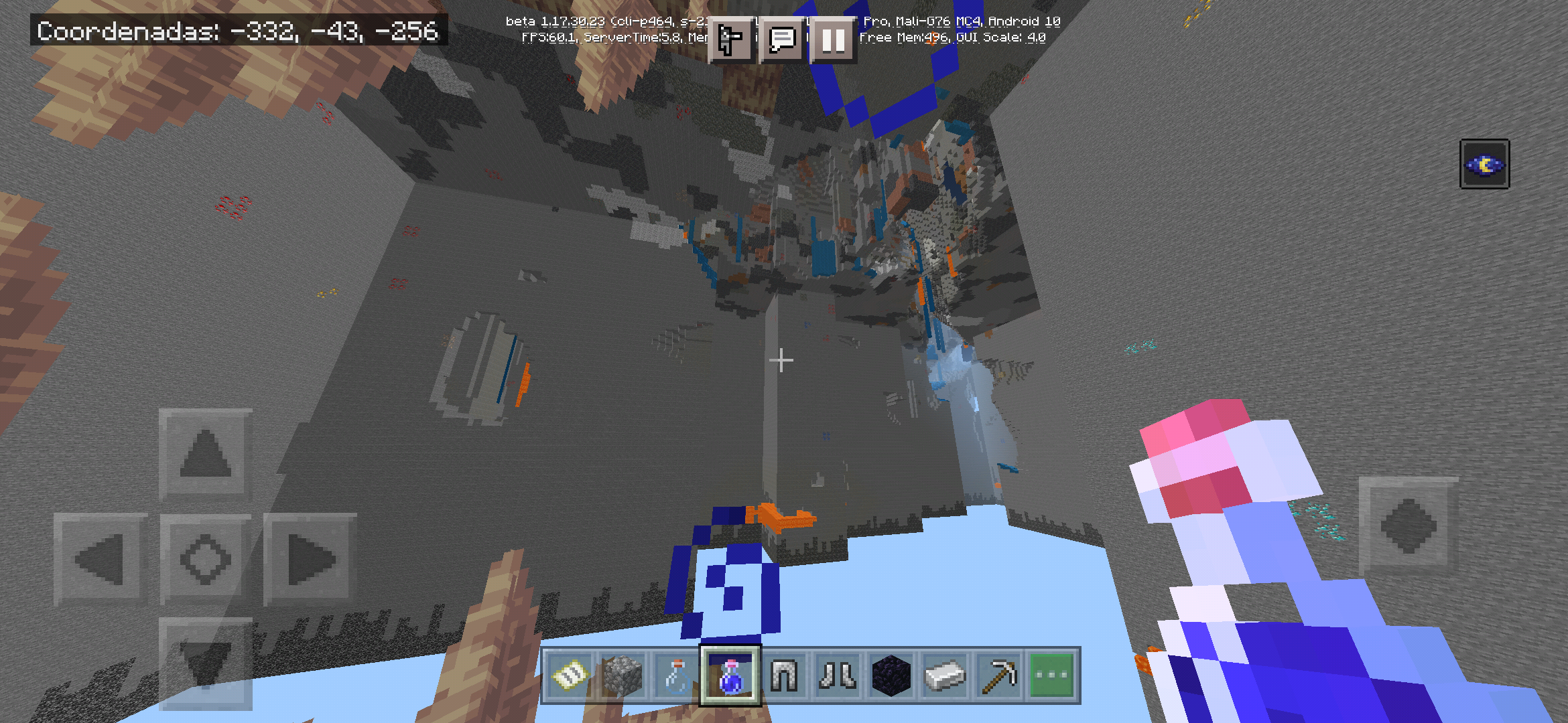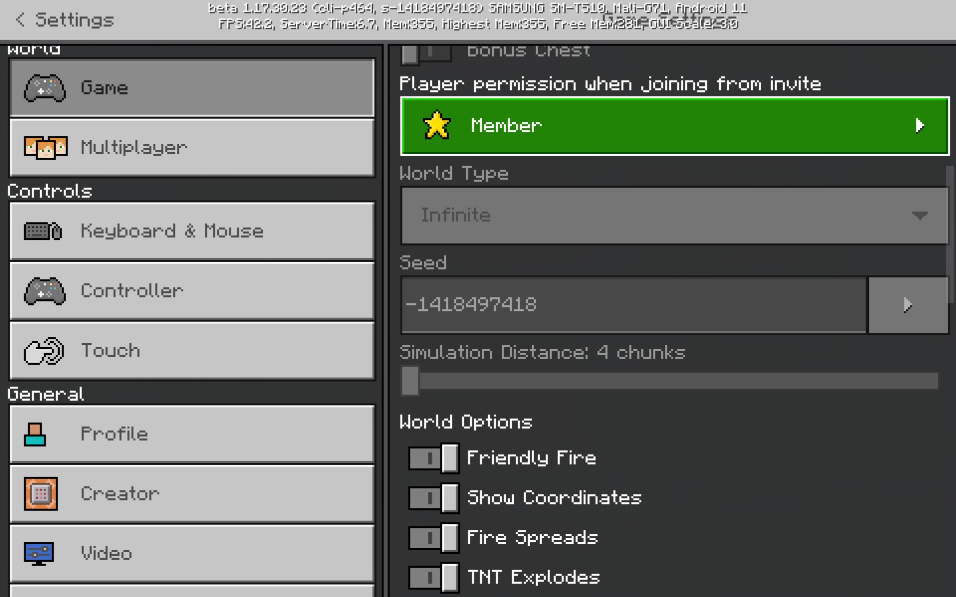 After experiencing bug MCPE-139680, a newly created world is affected by this problem with Cliffs and caves toggle turned on.