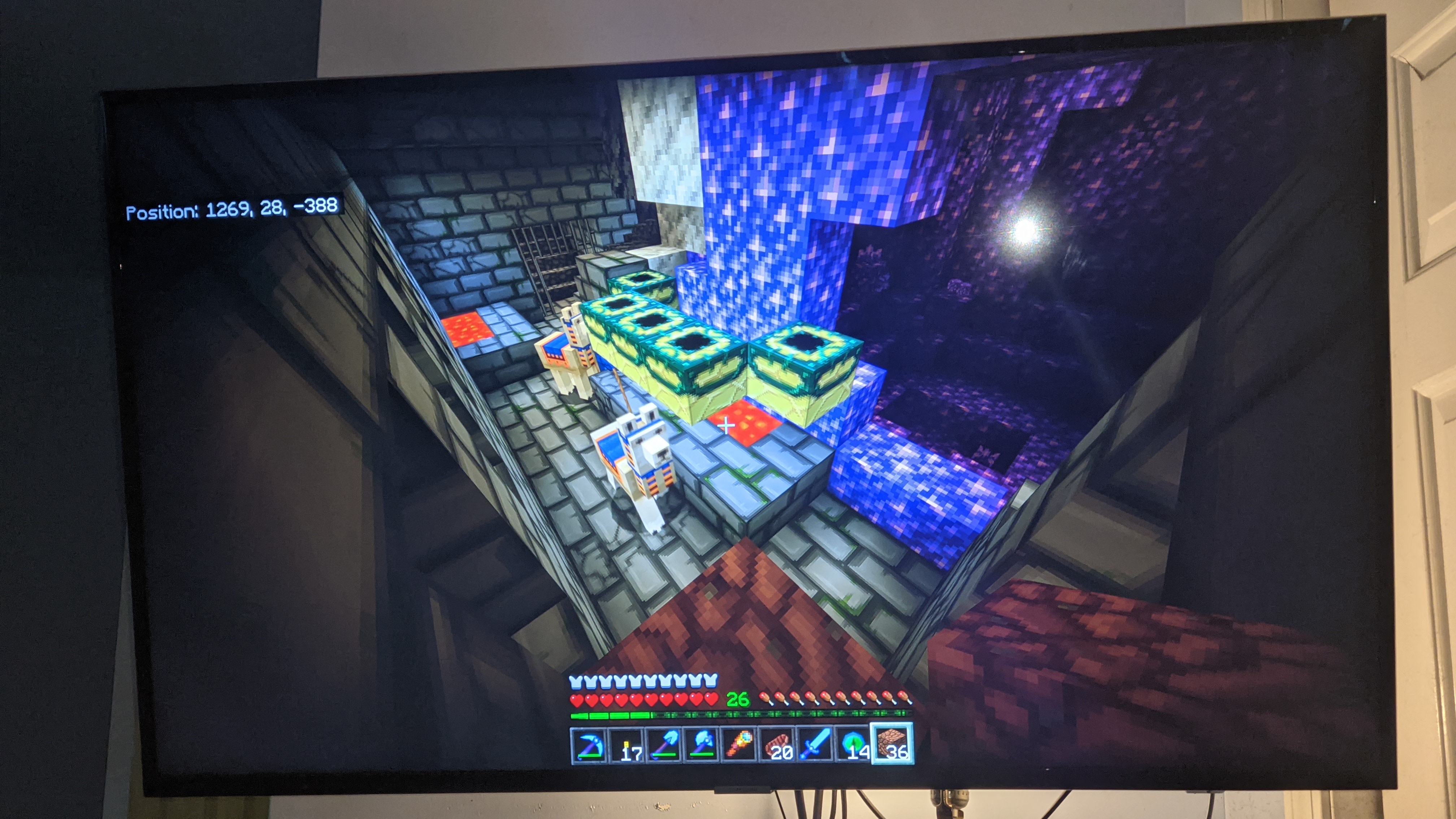 Seed 706156831 end portal in stronghold is cut in half from amythyst geode (I will include a picture) the portal is at coordinates 1269, 28, -388. This was the first stronghold I found closest to the spawn point
