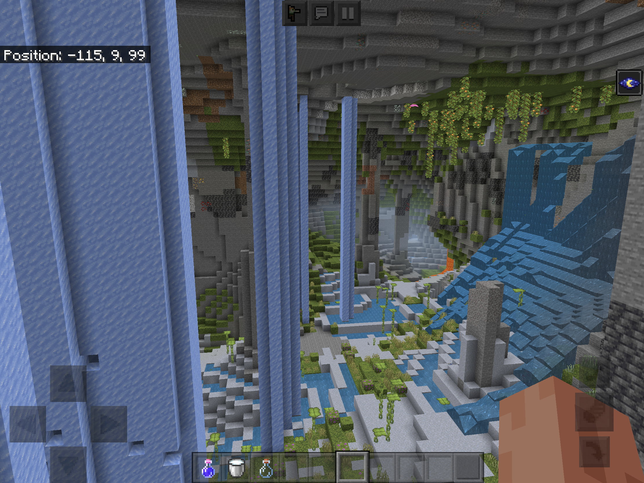 The packed ice from the frozen ocean biome is able to generate in caves when the Caves and Cliffs experimental toggle is on.