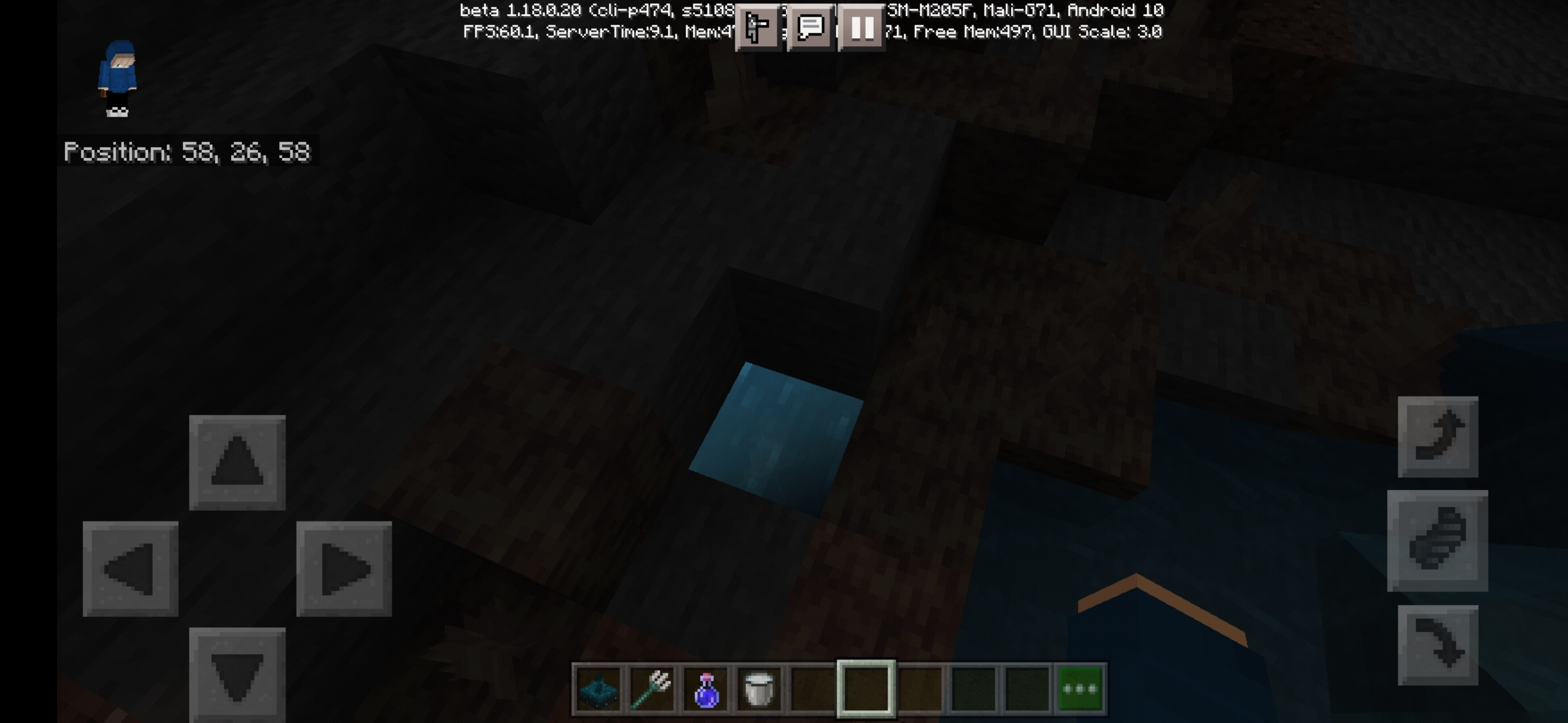 There is some light issue when a small pointed dripstone in water